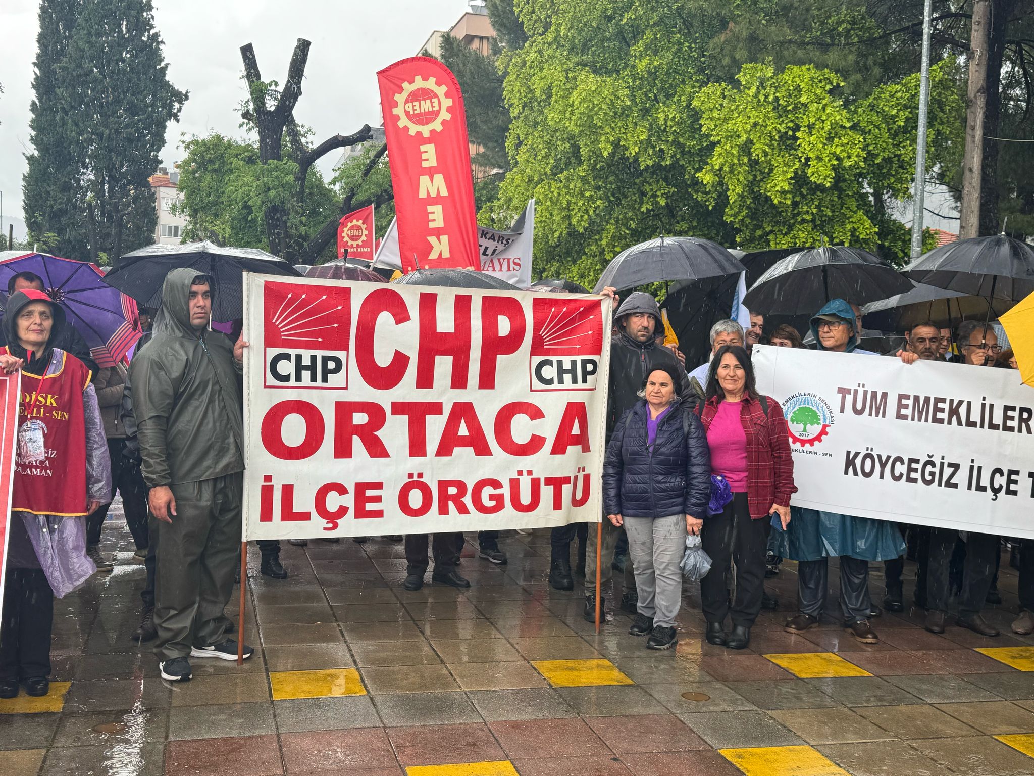 Muğla’nın Ortaca İlçesinde 1 Mayıs yoğun yağışa rağmen Cumhuriyet Meydanında gerçekleşti. Yüzlerce emekçi dövizlerinde ve sloganlarında taleplerini dile getirdi.