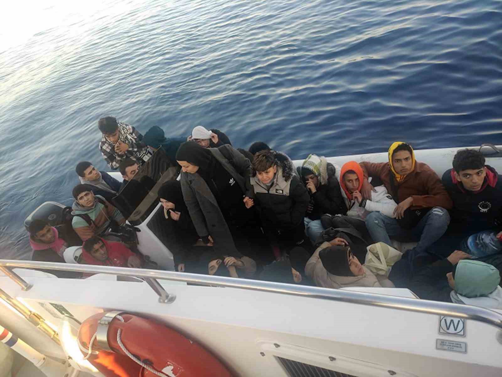 Muğla’nın Marmaris ilçesi açıklarında hareket halindeki fiber karinalı lastik botun içinde 12’si çocuk 24 düzensiz göçmen ve 2 göçmen kaçakçılığı şüphelisi yakalandı.