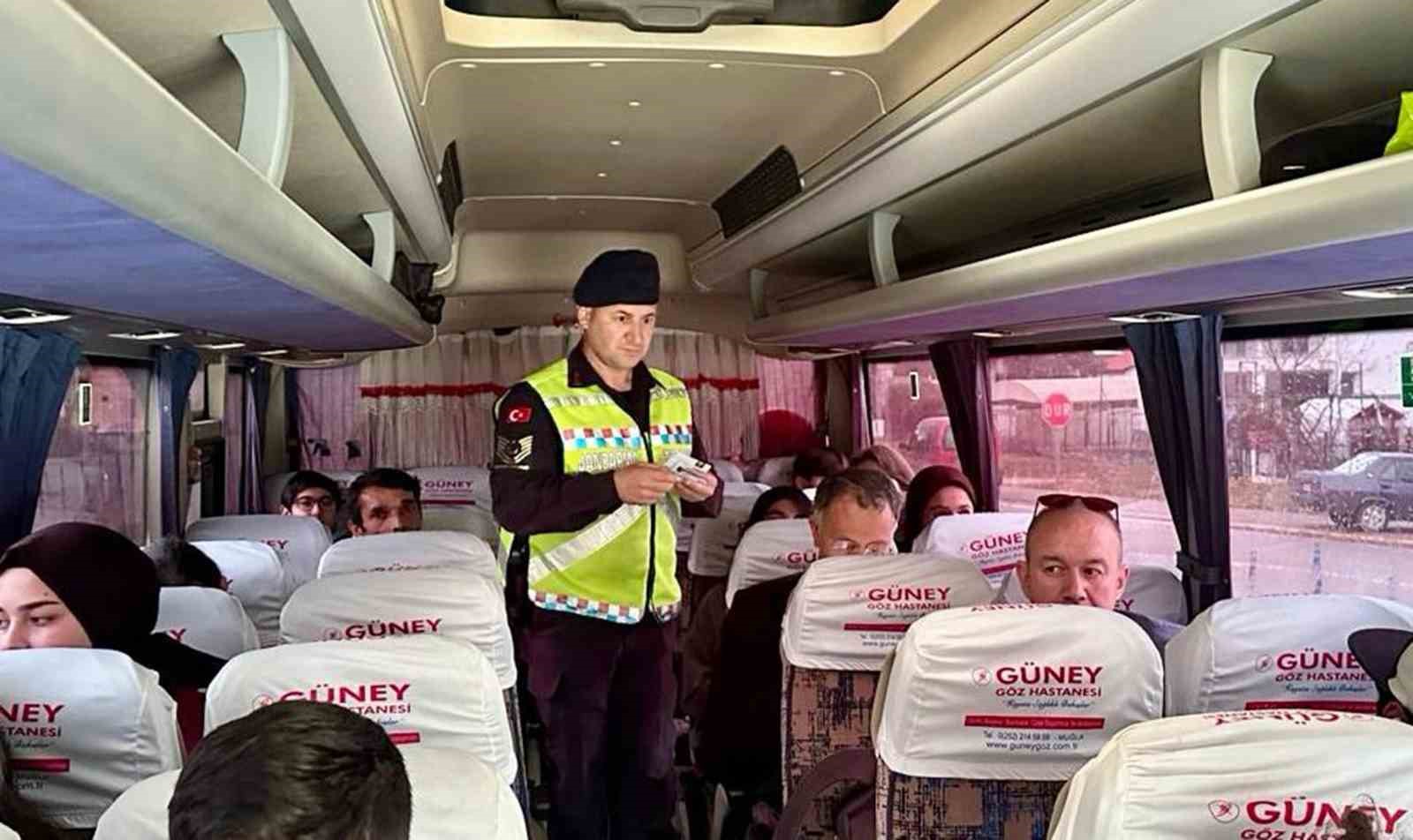 Muğla İl Jandarma Komutanlığı trafik timleri tarafından şehirlerarası yolcu taşıyan otobüslerde denetim yapıldı.
