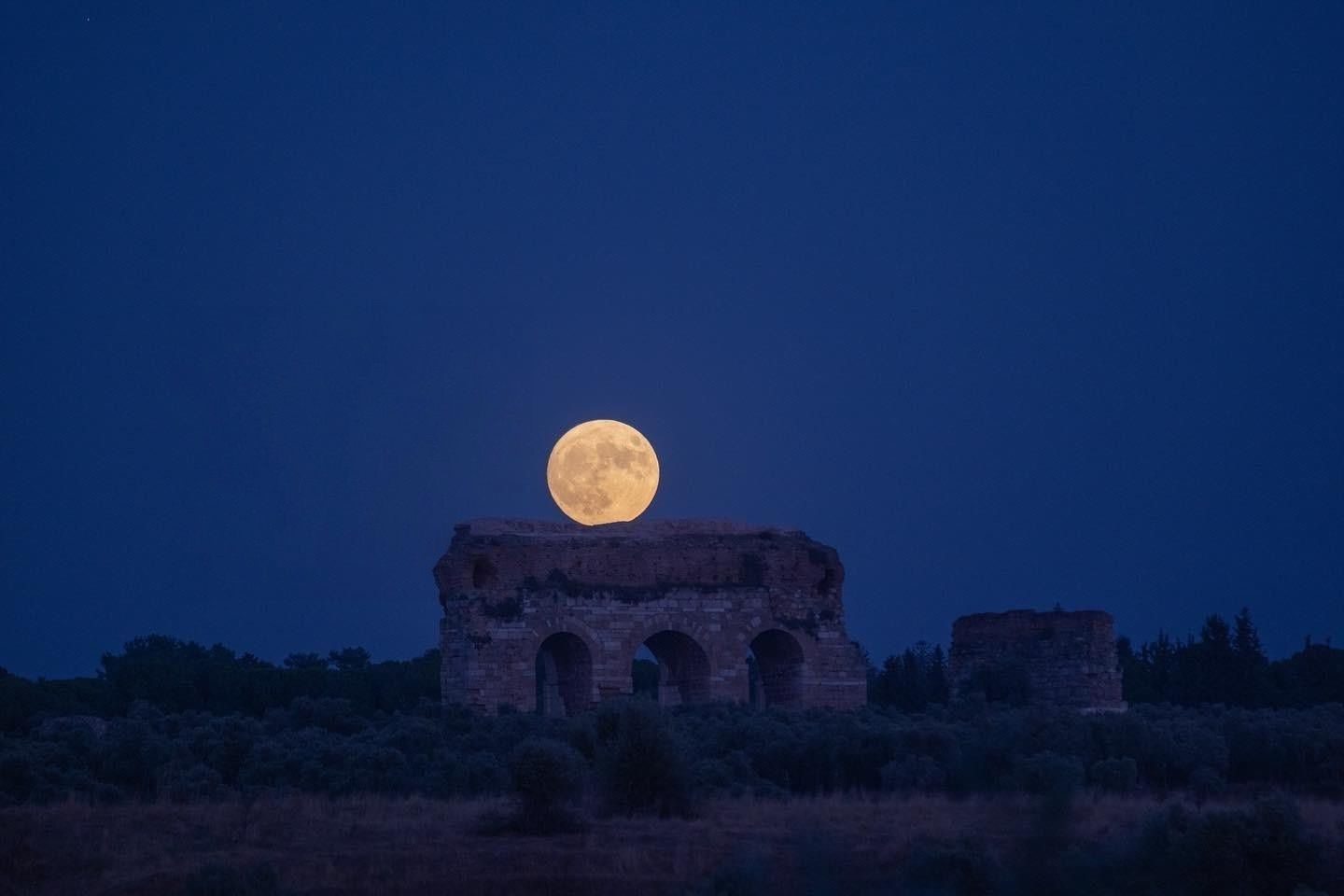 Aydın’da şehrin sembolleri arasında yer alan 3 bin yıllık Tralles Antik Kenti ile birlikte görüntülenen dolunay, kartpostallık görüntüler oluşturdu. Yüzde 14 daha büyük görünen dolunay, Türkiye’nin pek çok yerinde olduğu gibi Aydın’da da net bir şekilde görüldü.