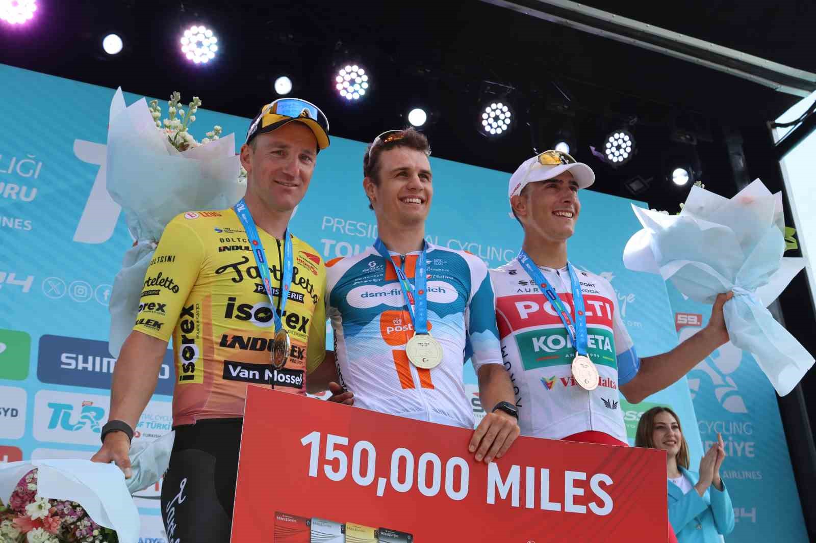 59. Cumhurbaşkanlığı Türkiye Bisiklet Turu’nun 125.4 kilometrelik Çeşme-İzmir etabını DSM-Firmenich PostNL Takımı’ndan Danimarkalı Tobias Andersen, 2 saat 50 dakika 58 saniyelik dereceyle kazandı.