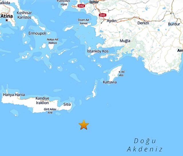Depremin merkez üssünün Akdeniz’de Datça’ya yaklaşık 247 kilometre mesafede olduğu belirlenirken, sarsıntının 7.08 kilometre derinlikte gerçekleştiği açıklandı.