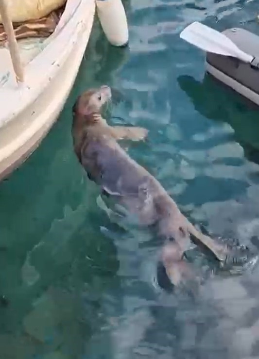 Muğla’nın Bodrum ilçesine bağlı Akyarlar Mahallesi’ndeki balıkçı barınağında görülen yavru Akdeniz foku, bayramın ikinci gününde vatandaşların ilgi odağı oldu.