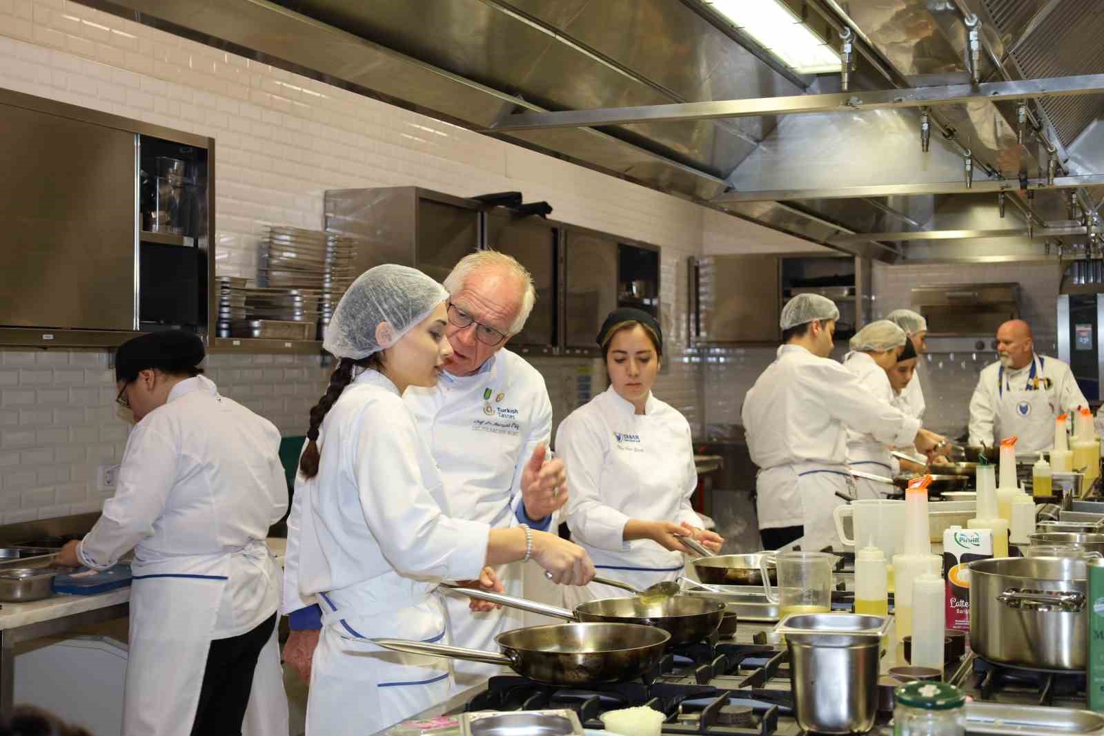 Yaşar Üniversitesi Gastronomi Bölümü öğrencileri Amerikalı şeflerle Mini Karakılçık Kumru Ekmeği, Sumaklı Tereyağ, Levrek Sambosa, Söğürtme Parfait, Pestil Coulis, Levrek Ballotine, Fındıklı & Adaçaylı Buğday Risotto, Kaşar Peyniri Tuilles ve İncirli Strudel’den oluşan menü hazırladılar. Öğle yemeğine; Yaşar Üniversitesi Rektör Yardımcısı Prof. Dr. Yiğit Kazançoğlu, Genel Sekreter Ender Duran, Uluslararası Rekabetten Sorumlu Rektör Yardımcısı Mehmet Hasan Atasoy, Ege Su Ürünleri ve Hayvansal Mamuller İhracatçıları Birliği Yönetim Kurulu Başkanı Bedri Girit, Ege Mobilya Kâğıt ve Orman Ürünleri İhracatçıları Birliği Yönetim Kurulu Üyesi ve Turkish Tastes Ambassador Kazım Gürel, Ege İhracatçı Birlikleri Genel Sekreteri İ. Cumhur İşbırakmaz, Genel Sekreter Yardımcısı Serap Ünal, Yaşar Üniversitesi Daire Başkanları Ata Türkfidanı ve Hüseyin Arslan, Gastronomi ve Mutfak Sanatları Bölüm Başkanı Prof. Dr. Seda Genç, Gastronomi ve Mutfak Sanatları Bölümü Öğretim Üyesi Dr.Öğretim Üyesi Ezgi Fadıloğlu, Yönetici Şef Selin Güloğlu ve İdari Şef Mehmet Gürses katıldılar.