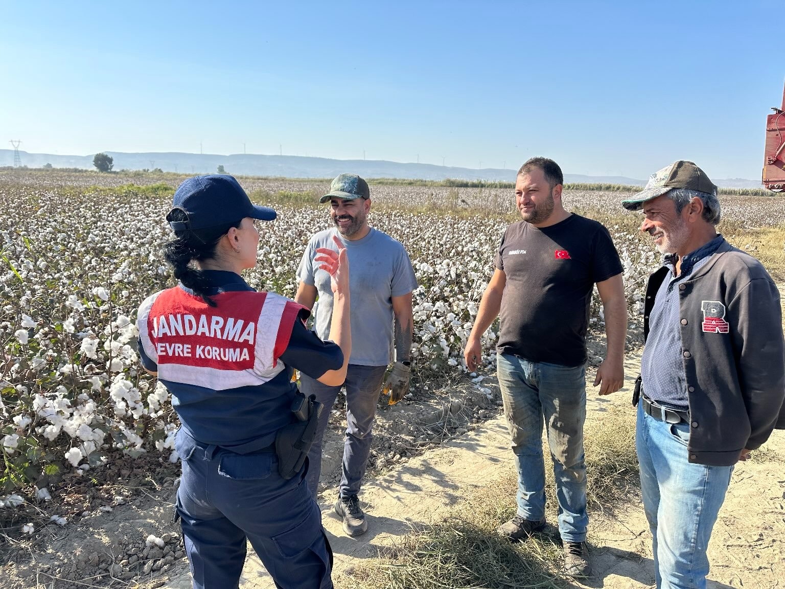 Aydın İl Jandarma Komutanlığı Çevre Doğa ve Hayvanları Koruma Tim Komutanlığı ekipleri, çalışmalarına aralıksız devam ediyor. Bu çerçevede Didim ilçesinde sahaya inen ekipler, pamuk hasadı yapan vatandaşlarla bir araya geldi. Yapılan çalışmalarda üreticiler, anız yakımı konusunda uyarıldı. Ziyaretlerde üreticilere, 2872 Sayılı Çevre Kanunu kapsamında anız yakmanın dekar başına 386,79 TL cezası olduğu hatırlatılırken, yangın risklerine karşı ve yaptıkları hasatlar sonucunda anız yakmanın toprağın verimini düşürdüğü, toprakta canlılara, çevreye ve doğaya verdiği olumsuz etkiler hakkında bilgilendirmeler yapıldı. Çevre, doğa ve hayvanların korunması hedefiyle bilgilendirme faaliyetleri ve denetimlerin aralıksız süreceği öğrenildi.