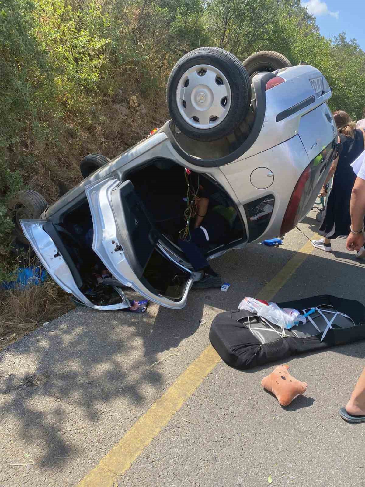 Muğla’nın Menteşe ilçesi Yerkesik yolu üzerinde direksiyon hakimiyetini kaybeden sürücünün kullandığı araç ters dönerek durabildi.