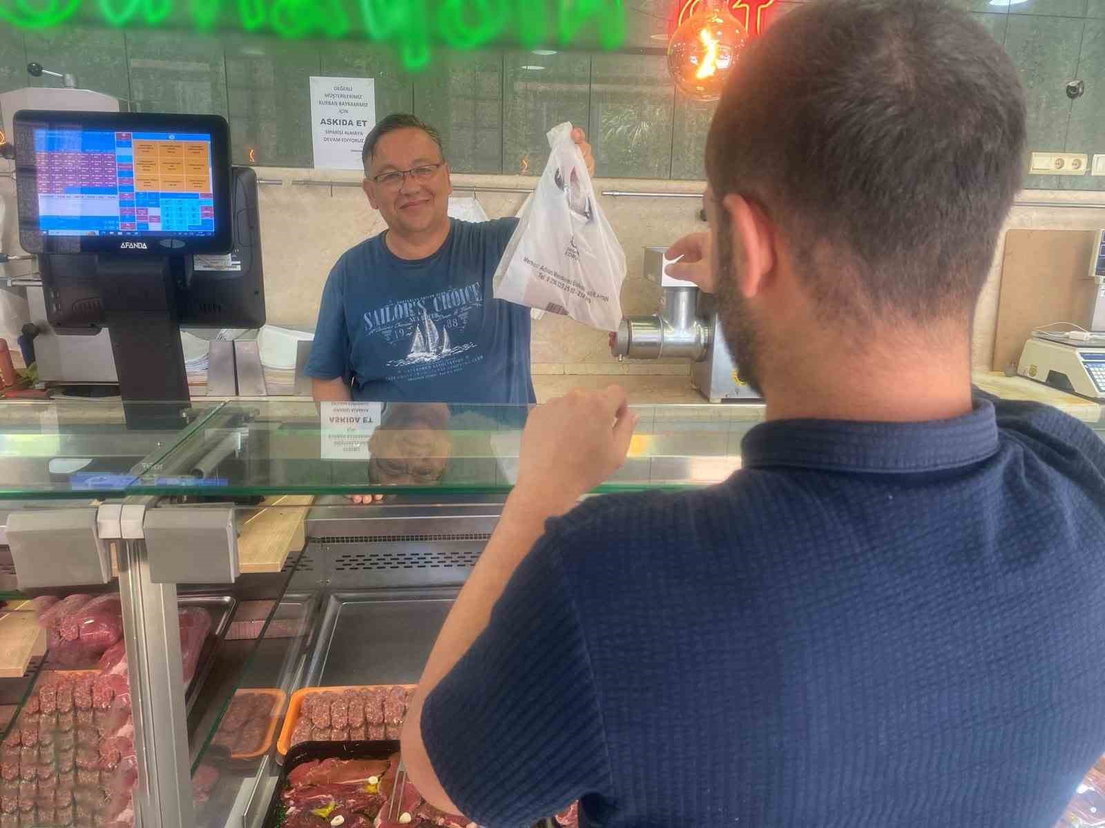 Aydınlı kasap Levent Yelgen’in, dört yıl önce bir müşterisinin tavsiyesiyle başlattığı ve hayırseverlerin katkılarıyla sürdürdüğü “Askıda et” uygulaması ile bugüne kadar yaklaşık bin aileye yardım ulaştığını söyledi.