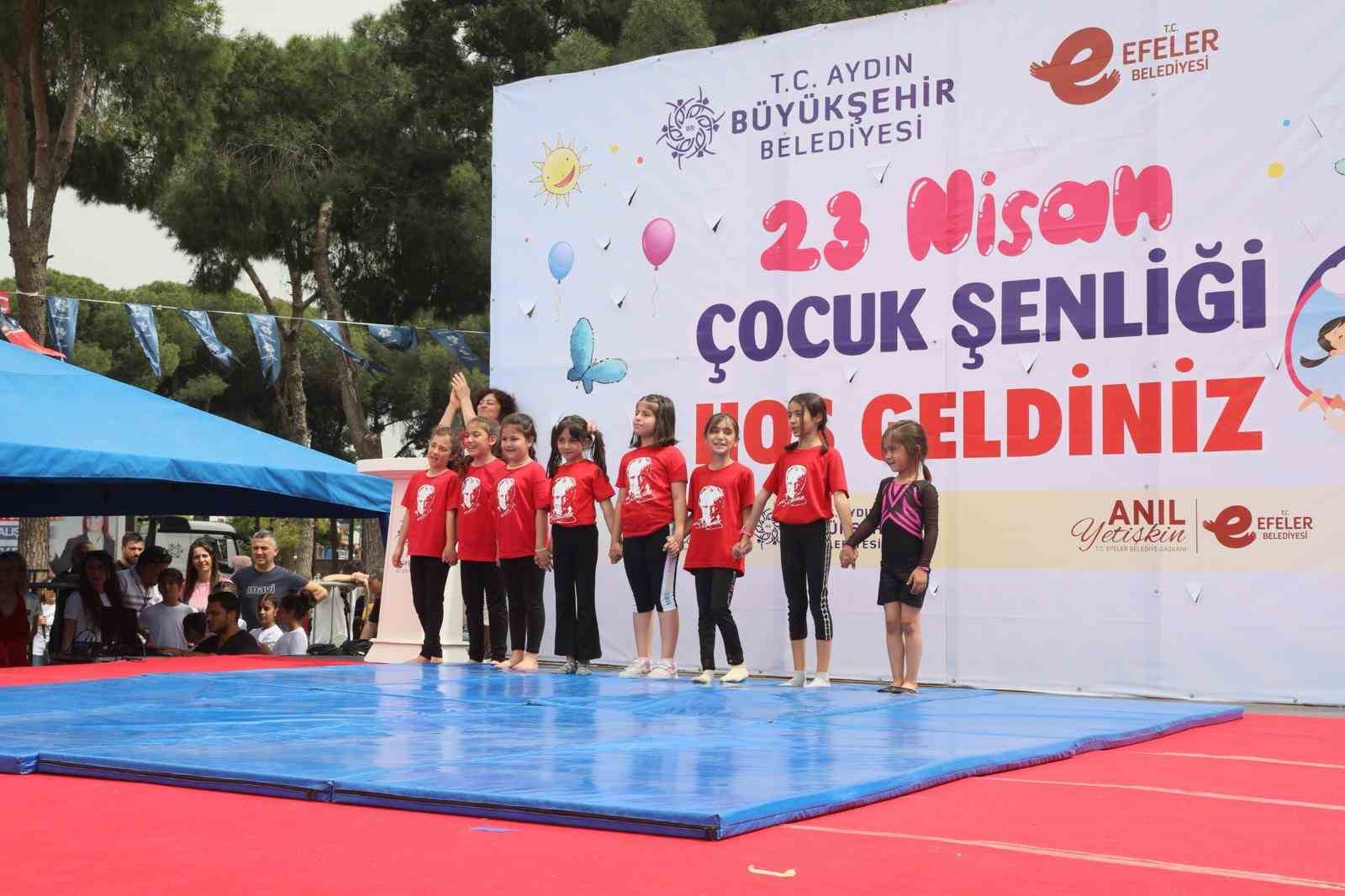 Büyükşehir Belediyesi ve Efeler Belediyesi tarafından Aydın Tekstil Park’ta düzenlenen 23 Nisan Ulusal Egemenlik ve Çocuk Bayramı şenliğine binlerce çocuk aileleriyle birlikte katıldı. Kutlama etkinliklerinde çocuklar için birçok oyun ve eğlence alanı oluşturulurken Büyükşehir Belediyesi’nin çocuk gelişim ve kültür merkezlerine devam eden çocuklar da bale ve jimnastik yeteneklerini sergileyerek büyük alkış aldı.