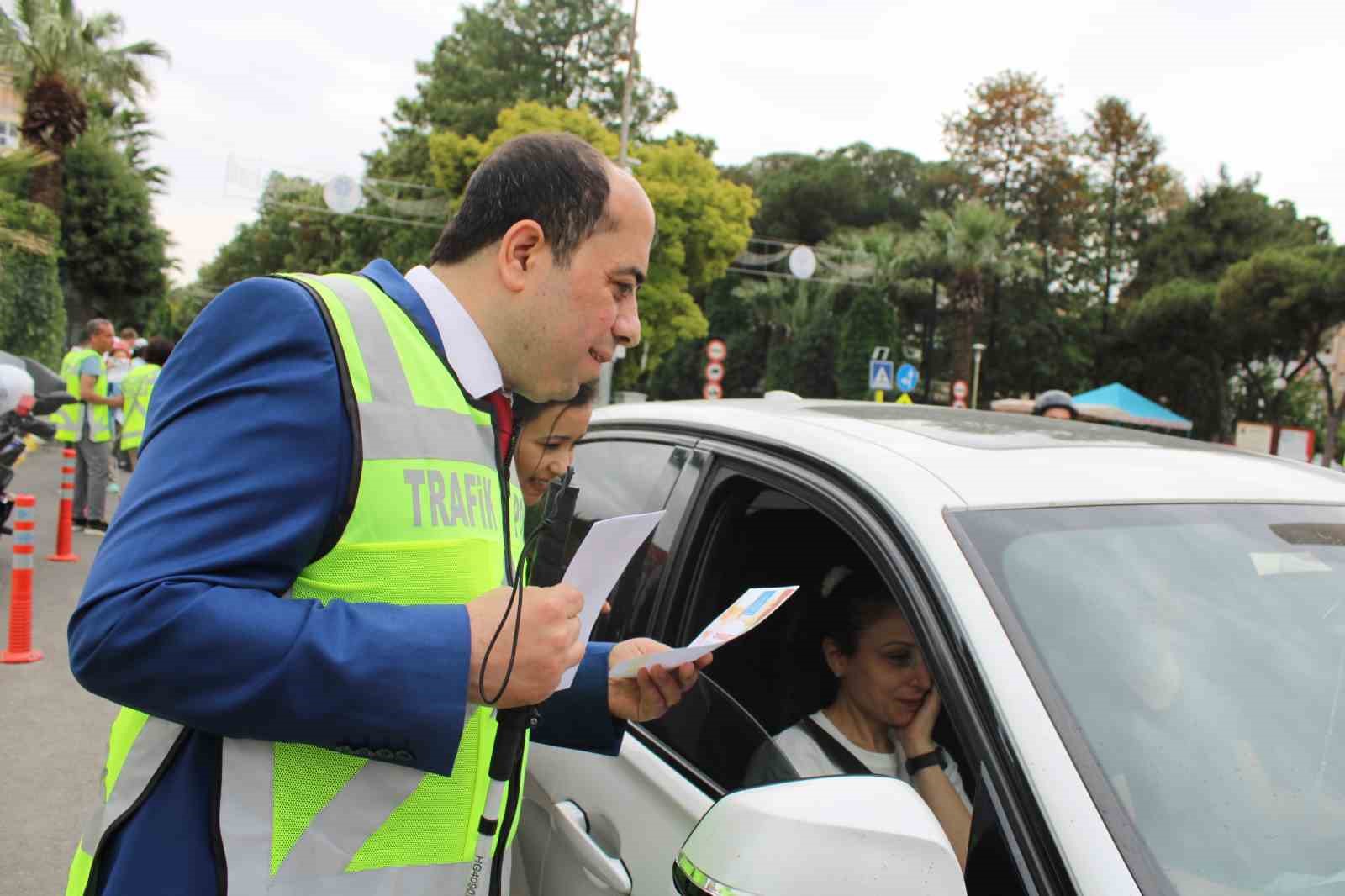 Aydın İl Emniyet Müdürlüğü Trafik Denetleme Şube Müdürlüğü ekipleri ve Aydın Şehit Aileleri ve Malul Gaziler Dayanışma Derneği üyelerinin de katılımıyla gerçekleştirilen projede vatandaşlara da bilgilendirici broşürler dağıtıldı.