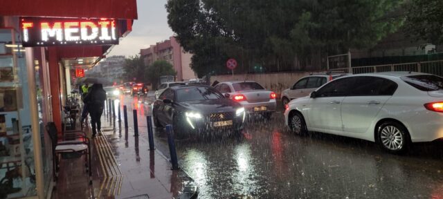 Meteoroloji’nin sağanak yağış uyarısının ardından Aydın’da akşam saatlerinde gök gürültülü sağanak yağış etkili oldu. Bir anda bastıran yağış sonrasında yollar dereye dönerken, araç sürücüleri ve vatandaşlar zor anlar yaşadı. Zaman zaman trafikte aksamalar olurken, yağmura yakalanan vatandaşlar ise sığınacak yer aradı. Yağış nedeniyle bazı yollarda su birikintileri oluşurken, araç trafiği sağlanamadı. Yağışların gece saatlerine kadar aralıklarla devam etmesi bekleniyor.