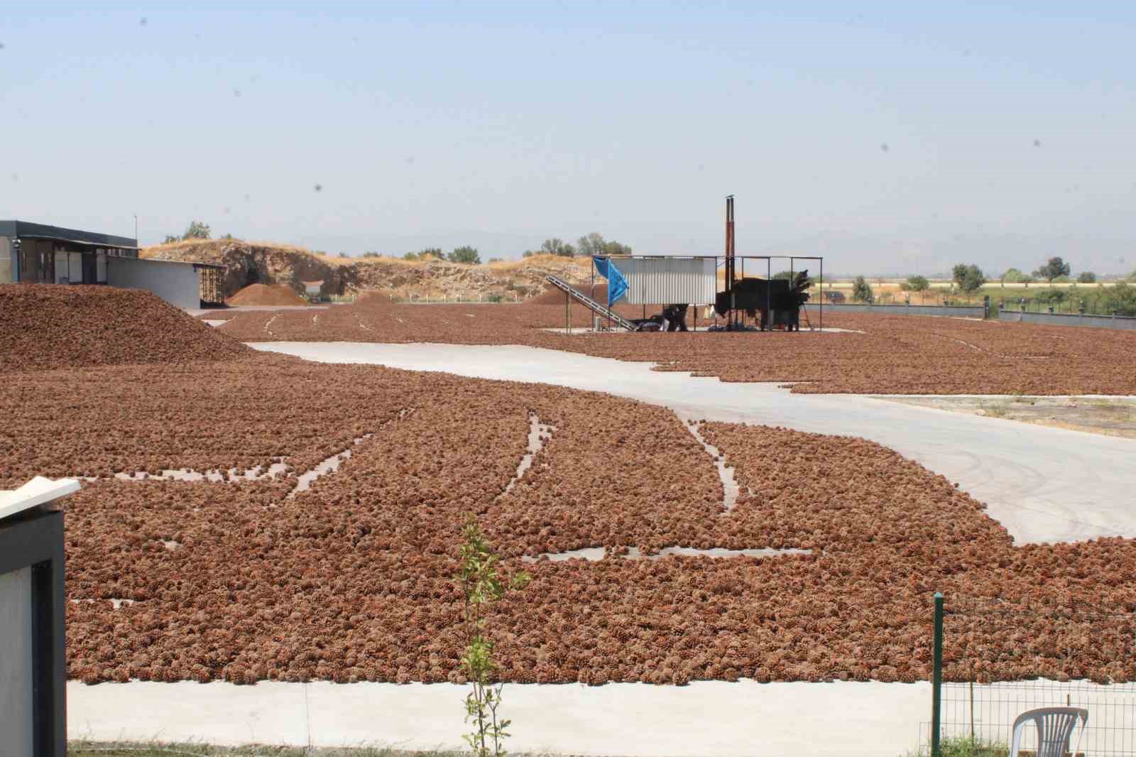 Koçarlı ilçesinde bir firma tarafından kurulan kurutma alanında Aydın’ın yanı sıra ülkenin değişik illerinden getirilen çam fıstığı kozalakları kurumaya bırakıldı. Normal şartlarda kozalakları kurutmak için özel fırın kullanıldığını belirten üreticiler, “Kozalakların içindeki fıstığa ulaşılabilmesi için yüksek ısıda fırınlanması gerekir. Kozalaklar ısıyı aldıktan sonra açılır. Ancak Aydın aşırı sıcak bir memleket olduğu için kozalakları açtırmak için fırın yerine Aydın’ın sıcağını kullanıyoruz. Bu sistem hem daha doğal hem de daha ekonomik oluyor. Bu nedenle Türkiye’de üretilen çam fıstığı kozalaklarının önemli bir kısmı Aydın’da işleniyor” diye konuştular.