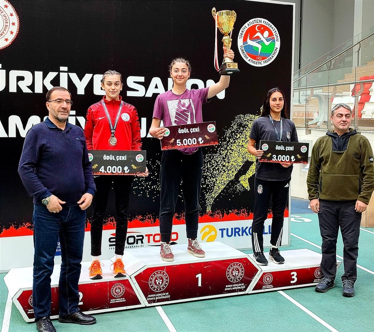 Kadınlar U18 kategorisi gerçekleştirilen müsabakalar büyük bir heyecana sahne olurken, 60 metre engelli, yüksek atlama, uzun atlama, gülle atma ve 800 metre koşusunda yarışan sporcular, kıyasıya mücadele etti. Türkiye’nin dört bir yanından gelen genç yetenekler arasında dikkat çekici performans sergileyen Aydınlı sporcu Tuana Akgün, başarılı performansıyla Türkiye Şampiyonu unvanını kazandı.