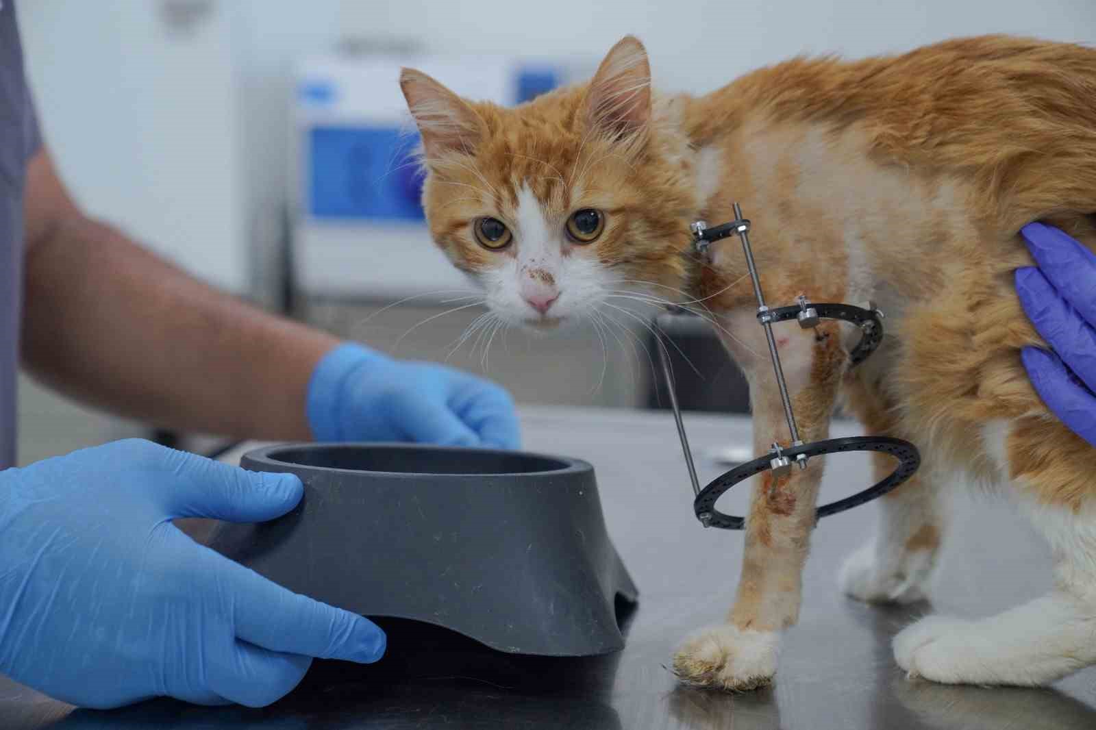 Ameliyat hakkında bilgi veren Veteriner Hekim Mehmet Uysal, ortopedi biriminde kedinin bacağının durumunu tespit ettiklerini belirterek, “Bacağının ciddi şekilde parçalandığını gördük. Burada sağlığına kavuşması için hemen gerekli cerrahi tedaviyi uyguladık. Bacağında parçalanan kemikleri özel bir aparatla sabitledik. Güvenli bir yöntem olduğu için bunu tercih ettik. Kedimiz 25 gündür bu şekilde tedavi altında. Bir süre sonra bu taktığımız aparatın kırıklar üzerindeki etkisine bakacağız. Bacak iyileşmiş olursa çıkaracağız. Şu anda sağlığı ile alakalı bir problemi yok. Keyfi yerinde. Bacağını nasıl kullanacağını öğreniyor diyebilirim” diye konuştu.