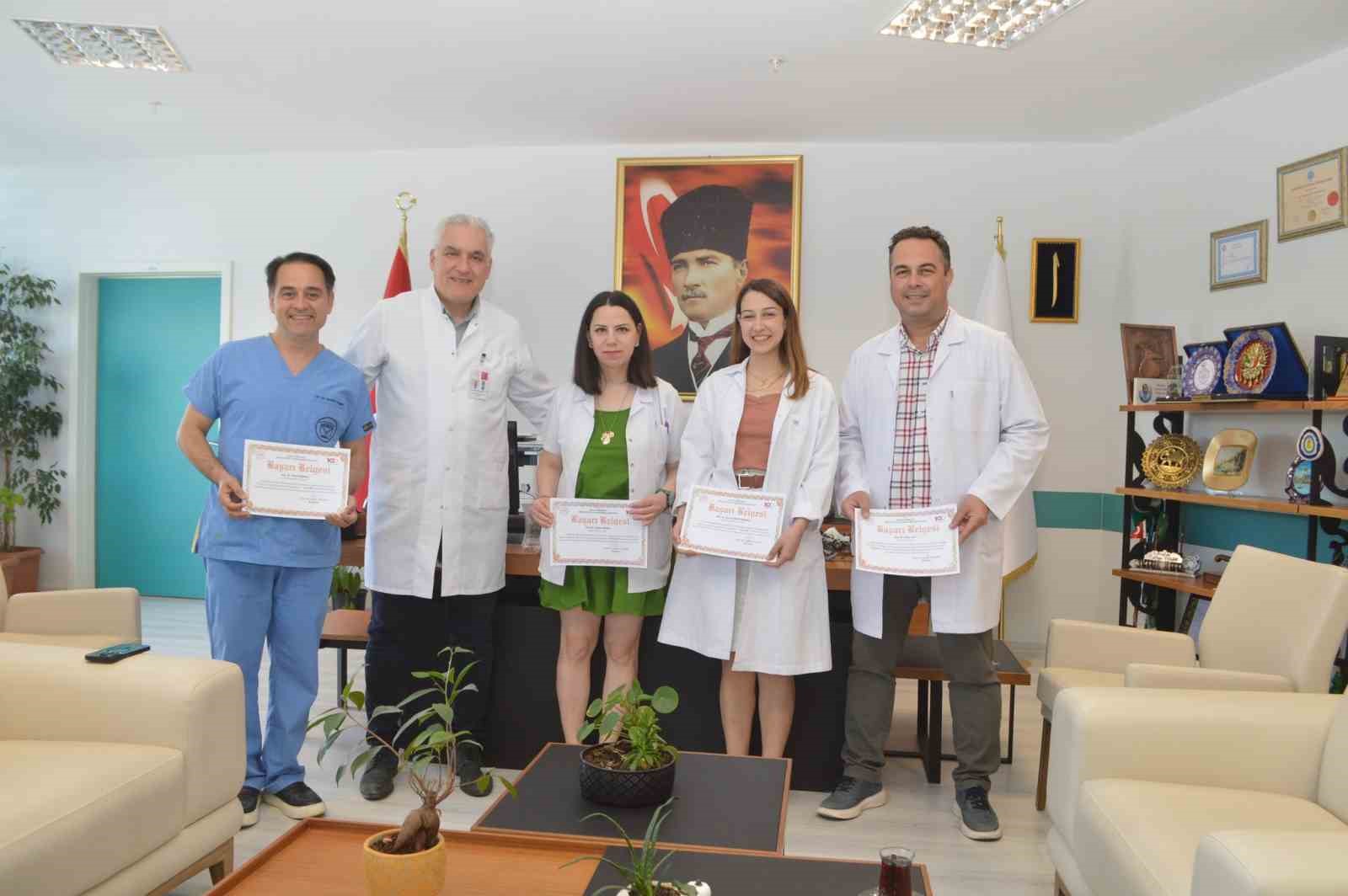 Muğla Eğitim ve Araştırma Hastanesi Başhekimi Prof. Dr. Turhan Togan, hastanenin başarılı hekimlerine yaptıkları bilimsel ve akademik çalışmalarla görevlerinde yükselme başarısını takdir ederek başarı belgelerini takdim etti.