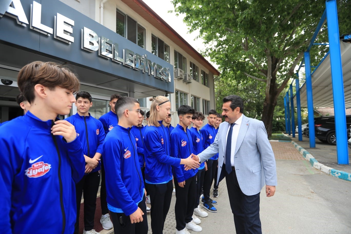 Pamukkale Belediye Başkanı Ali Rıza Ertemur, Denizli’de U16 Play-off müsabakalarında grubunu ikinci tamamlayarak Türkiye Şampiyonası’nda Denizli’yi temsil etme hakkı kazanan Dokuzkavaklarspor U16 takımını Uşak’a uğurladı.