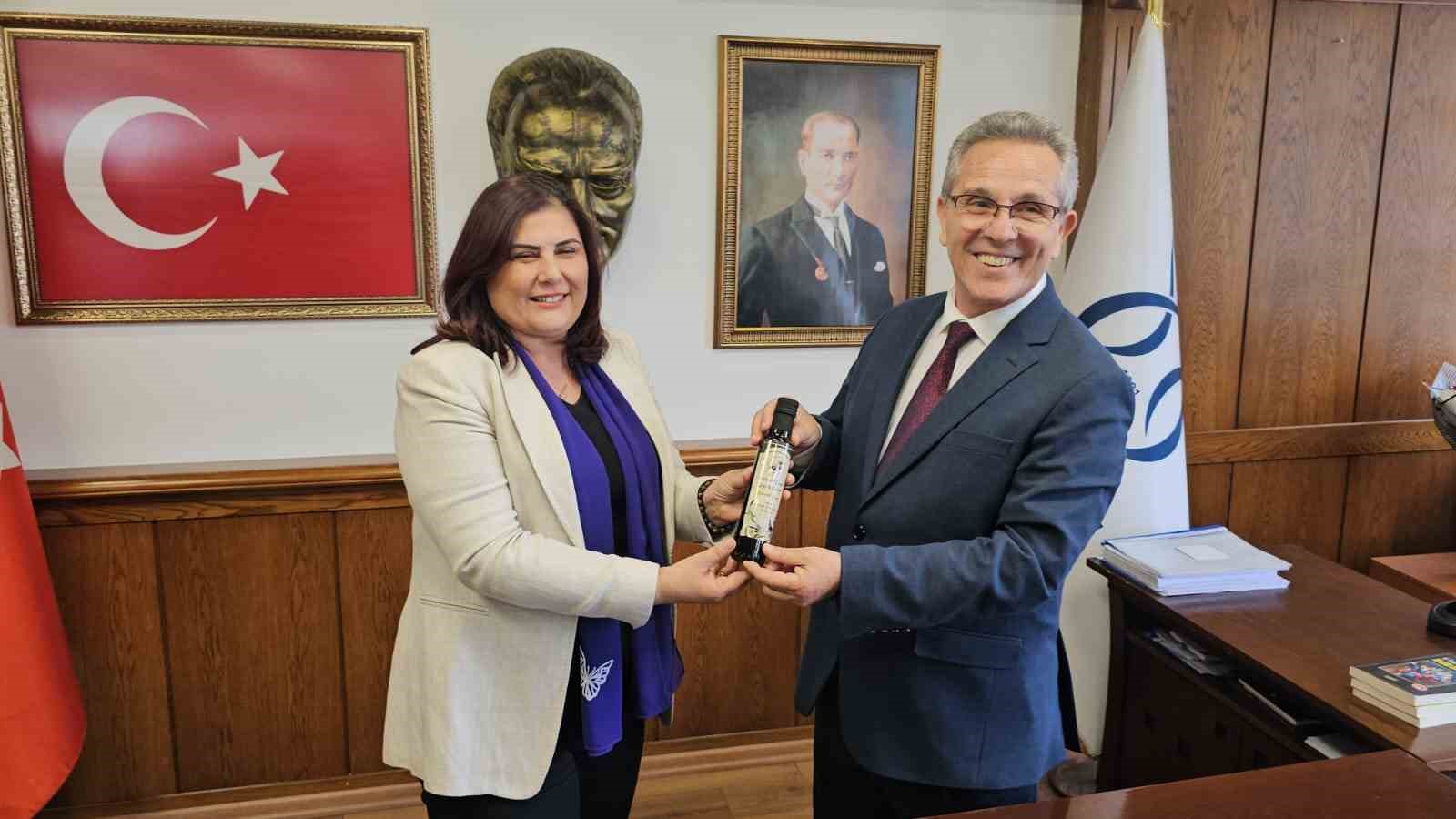 Ziyaretin sonunda Başkan Çerçioğlu, Nazilli Belediye Başkanı Ertuğrul Tetik’e Büyükşehir tarafından yetiştirilen zeytin ağaçlarından elde edilen bir şişe zeytinyağı ve lokum hediye etti.