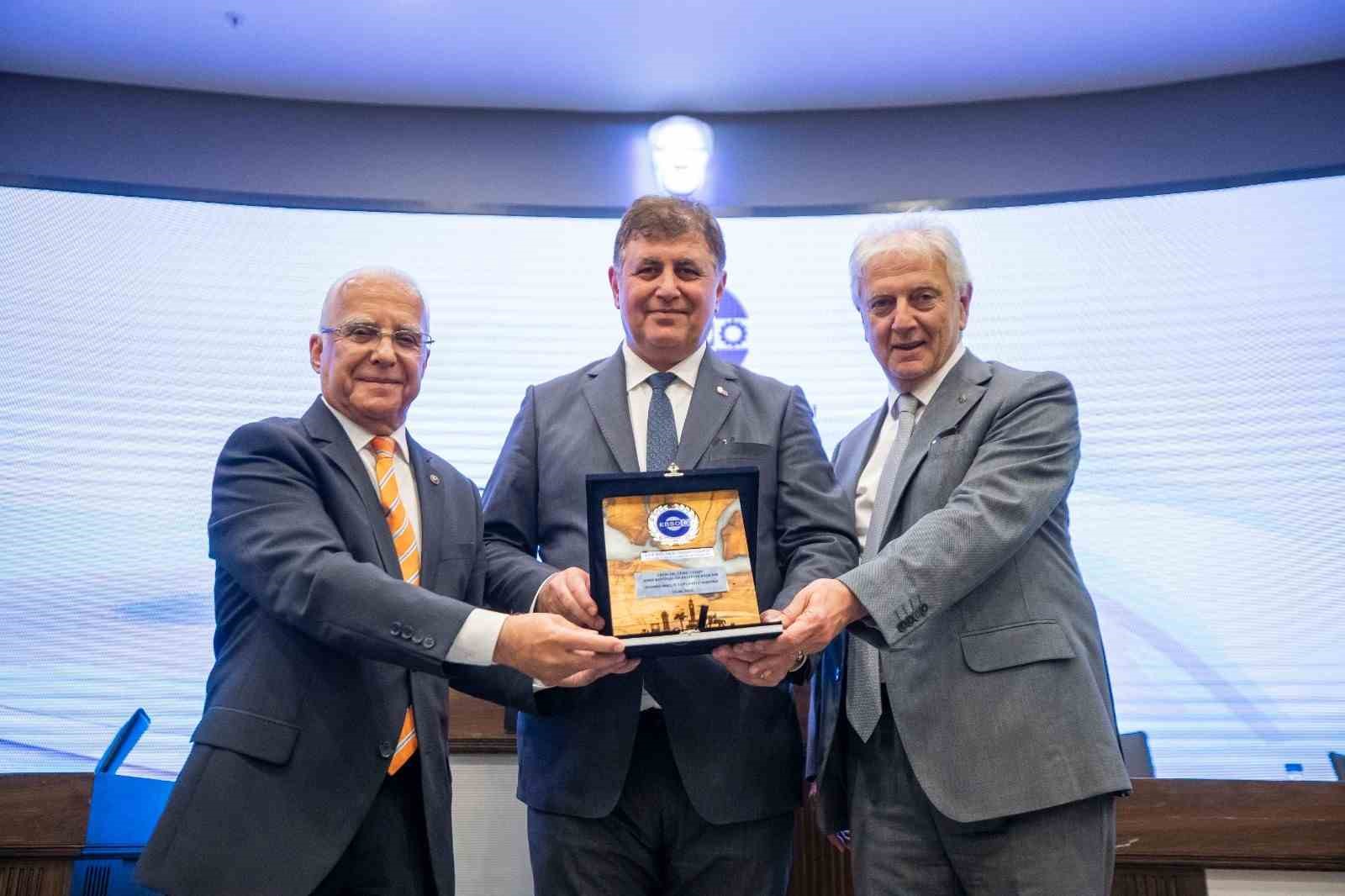 İzmir Büyükşehir Belediye Başkanı Dr. Cemil Tugay, Ege Bölgesi Sanayi Odası’nın (EBSO) Haziran ayı olağan meclis toplantısına konuk oldu. İzmir Ticaret Odası ev sahipliğinde düzenlenen meclis toplantısında Başkan Dr. Cemil Tugay’ı, EBSO Yönetim Kurulu Başkanı Ender Yorgancılar ve EBSO Meclis Başkanı İbrahim Gökçüoğlu, İzmir Ticaret Odası Yönetim Kurulu Başkanı Mahmut Özgener, Cumhuriyet Halk Partisi İzmir İl Başkanı Şenol Aslanoğlu kapıda karşıladı. Başkan Tugay, meclis oturumu kapsamında sanayicilerin sorun ve taleplerinden kent projelerine, kamuoyunda oluşturulmak istenen algılardan belediyenin mevcut durumuna ve alınan kararlara kadar kente dair pek çok konuda bilgi verdi.