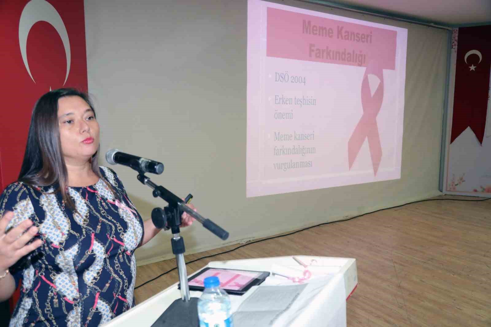 Seminerde, Bayraklı Belediyesi Sağlık İşleri Müdürlüğü’nde görev yapan Dr. Sibel Akay Tıkıroğlu, meme kanserinde erken teşhisin önemini anlatarak, hayat kurtardığını vurguladı. Modern tedavi yöntemleri ve tarama süreçlerinin önemini katılımcılarla paylaşan Tıkıroğlu, kadınlara düzenli kontrollerin aksatılmaması gerektiğini hatırlattı. Ayrıca, meme kanserinin erken tanı ile tedavi başarısının büyük ölçüde arttığı vurgulandı. Seminer sonunda, katılımcılara verilen numaralı biletlerle çekiliş yapıldı. Çekilişte 5 şanslı kişiye, meme kanserine dikkat çekmek amacıyla hayırsever Aysun Tokbaş gönüllü tarafından pembe kurdele hayat sigortası poliçesi hediye edilerek farkındalık çalışmasına anlamlı bir katkı sağlandı.
