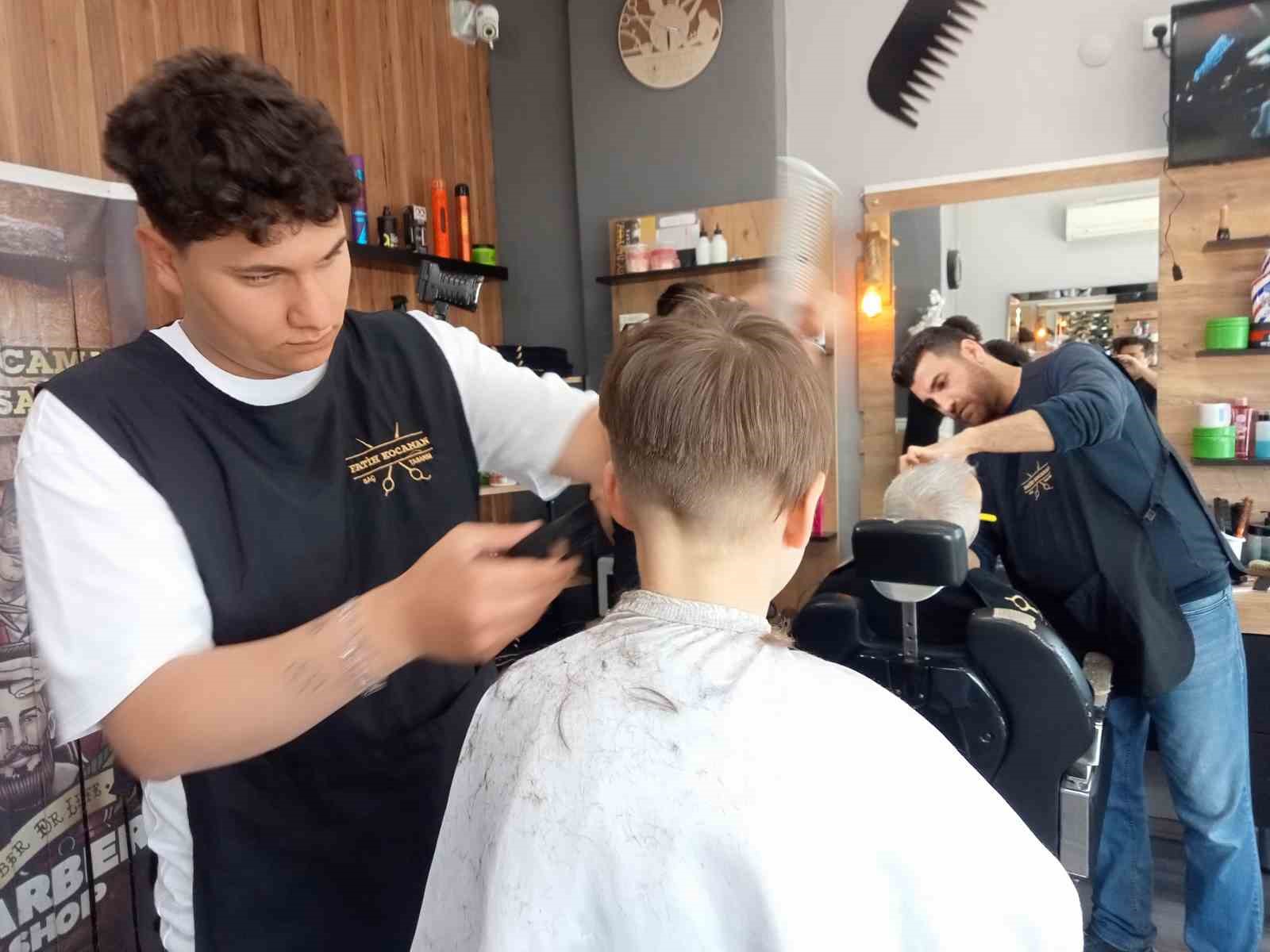 İzmir’de erkek kuaförlüğü yapan Fatih Kocaman, “Bayram arifesinde işlerimiz oldukça yoğun. Randevularımız 3 gün öncesinden doldu. Gece geç saatlere kadar çalışıyoruz. Normalde 9’da kapatıyoruz iş yerini ancak bayram haftası sabah 3’e 4’e kadar çalışıyoruz” diye konuştu. Kuaför Ahmet Ateşoğlu ise, “Bir haftadır aslında yoğun tempoyla çalışıyoruz ama arife günü tabi beklentimizin de üstünde bir talep oldu. Bugün saat 3’e, 4’e kadar buradayız. Yaptığımız saç tasarımlarıyla da vatandaşlarımızı mutlu edip, bayrama daha bakımlı girmelerine yardımcı oluyoruz” açıklamasında bulundu.
