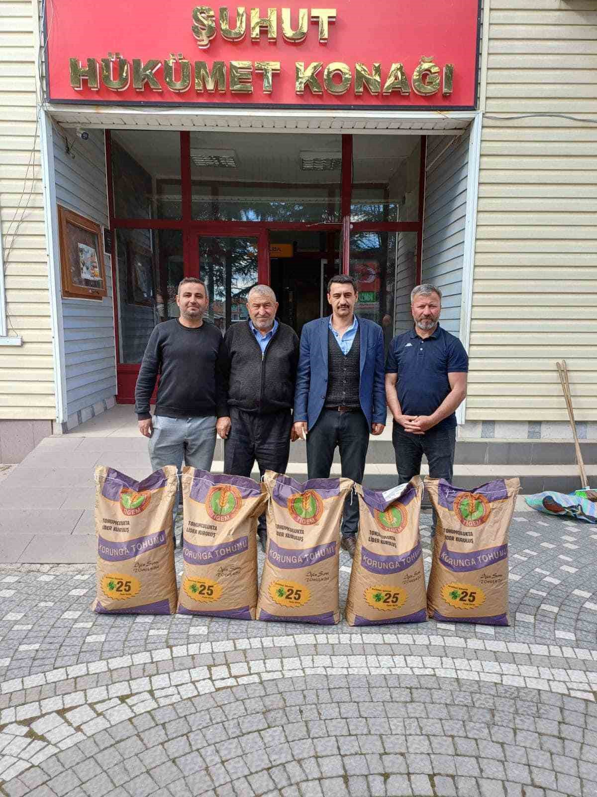 Afyonkarahisar Şuhut İlçe Tarım ve Orman Müdürlüğü tarafından meralarda kullanılmak üzere bin 80 kilogram korunga tohumu dağıtıldı.