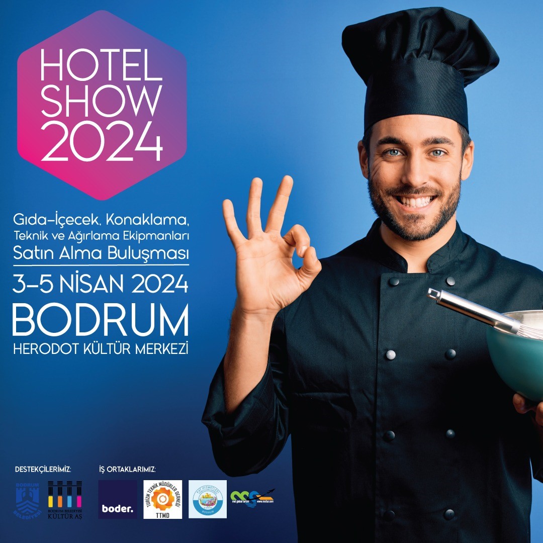Gıda-içecek, konaklama, teknik ve ağırlama ekipmanları satın alma buluşması olarak planlanan Hotel Show 2024, Bodrum Otelciler Derneği (BODER), Bodrum Turizm Teknik Müdürler Derneği (TTMD) ve Bodrum Kat Hizmetleri Yöneticileri Derneği (KAHDER) iş birliğiyle Bodrum Belediyesi ve Bodrum Belediyesi Kültür A.Ş. destekleriyle düzenlenecek.