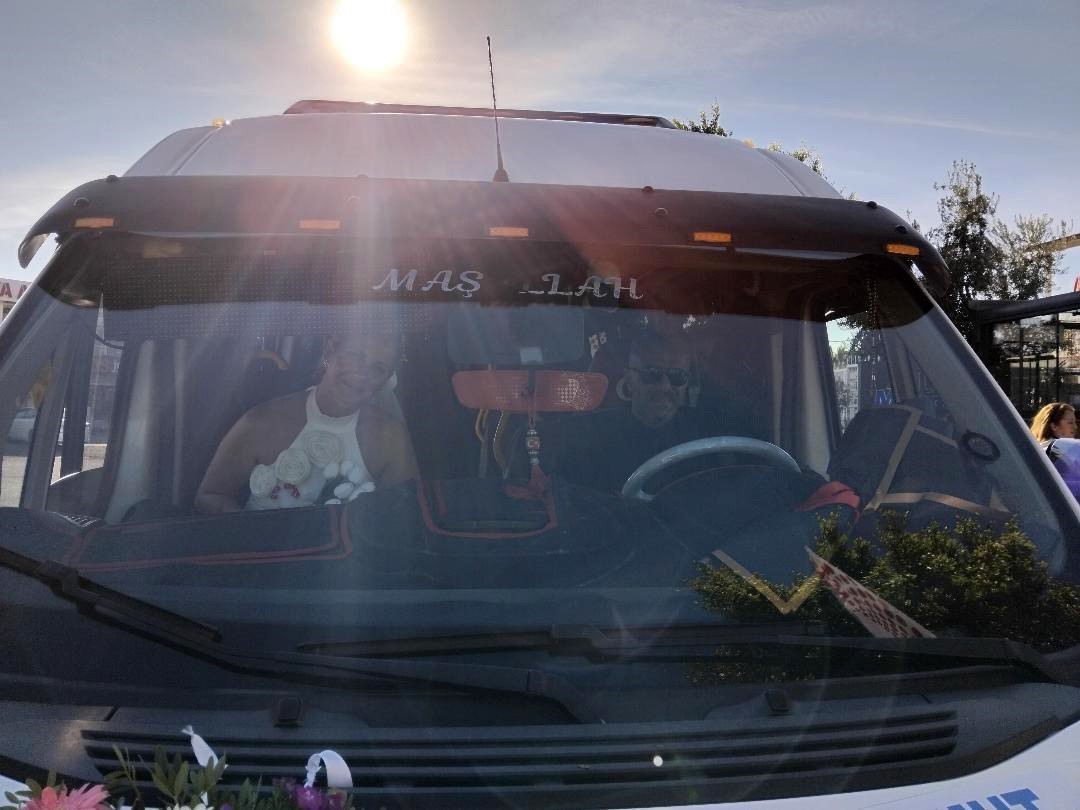 Yıllardır aynı dolmuşla çalıştıklarını söyleyen Umut ve Seminay Akkaya, “Bu araç bizim için sadece bir iş aracı değil, hayatımızın bir parçası. En mutlu günümüzde de onunla yola çıkmak istedik” dedi.