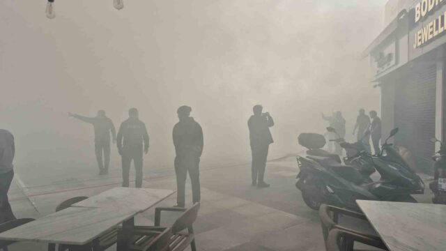 Muğla’nın Bodrum ilçesinde LC Waikiki firmasına ait mağazanın geri dönüşüm deposunda çıkan yangın kısa süreli paniğe neden olurken, Bodrum sokakları dumanla kaplandı.