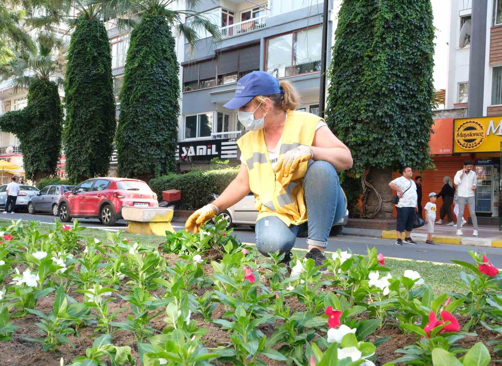 Aydın’ın tüm ilçelerinde, ana arterlerin yanı sıra Büyükşehir Belediyesi’nin sorumluluk alanındaki tüm kavşak ve yollarda bakım ve çiçeklendirme çalışmaları devam ediyor. Çalışmalarda mevsimlik çiçekler olan rozet, zinya ve kadife çiçekleri üretilip, kullanılıyor.