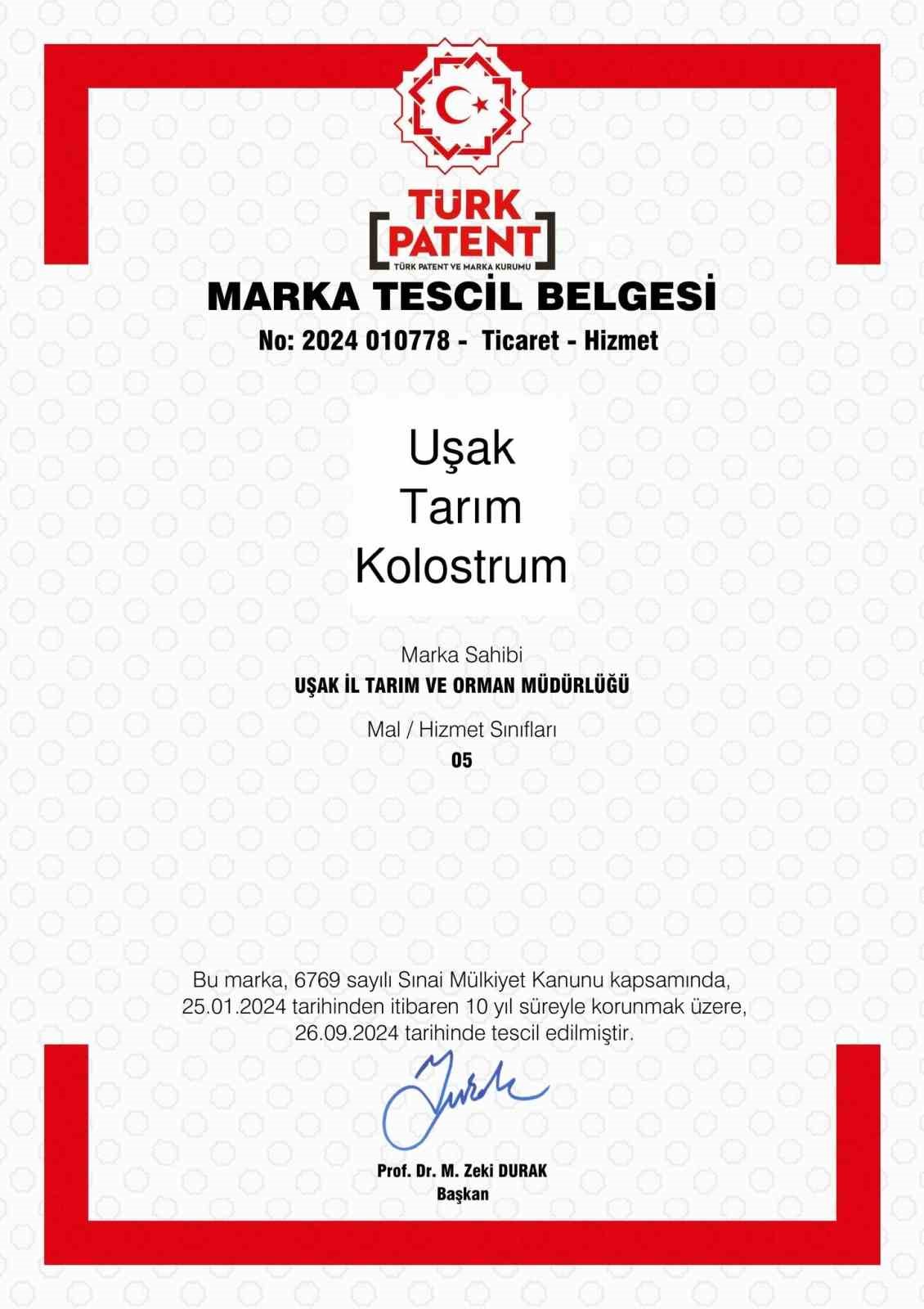 Marka tescilinin tamamlanmasıyla birlikte, Uşak İl Tarım ve Orman Müdürlüğü, üretim ve satış faaliyetlerine “Uşak Tarım Kolostrum” adı altında devam edecek. Ürün, sektördeki kaliteli çözümlerden biri olarak hayvancılıkla uğraşan çiftçilere önemli bir destek sunuyor.