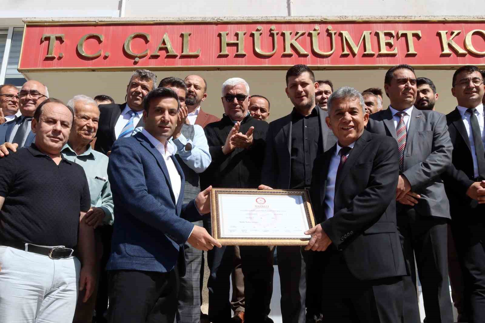 Çal İlçe Seçim Kurulunda düzenlenen mazbata töreninde, Belediye Başkanı Ahmet Hakan’a hakim Mehmet Emin Yıldırım tarafından mazbatası takdim edildi. Seçim kurulu önünde kendisini bekleyenler vatandaşlara seslenen Başkan Hakan ,Seçim sürecinde desteklerini esirgemeyen Çallılara teşekkür ederek yeni dönemde Çal’ın daha da gelişmesi, yaşanabilir bir ilçe olması için çalışacaklarını ve halklarına layık olmaya gayret göstereceklerini belirtti.