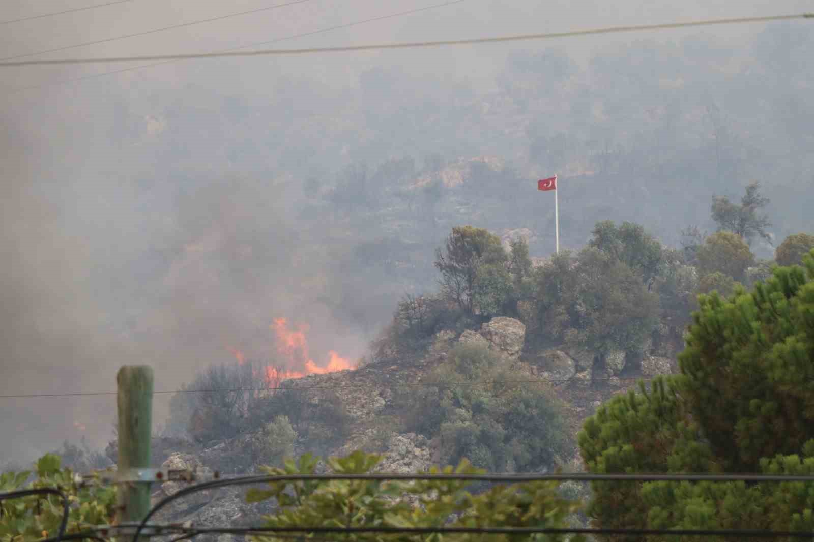 Aydın’ın Germencik ilçesinde başlayarak Söke ilçesine sıçrayan orman yangınına havadan ve karadan müdahale sürerken, alevlerin bölgedeki bir gönderde asılı duran Türk bayrağına ulaşmaması için yoğun çaba sarf eden ekipler bayrağı yanmaktan kurtardı.