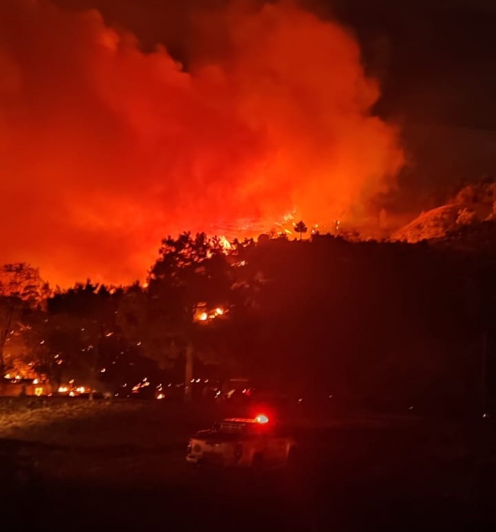 Muğla’nın Dalaman ilçesinde çıkan orman yangını rüzgarın şiddeti ile büyürken, mahalledeki bazı ev ve damların alevlere teslim olduğu öğrenildi.
