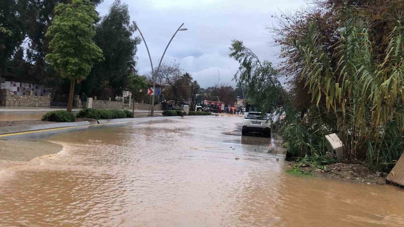 Muğla’nın Datça ilçesinde etkili olan sağanak yağış sonrası Reşadiye Mahallesi ile İskele Mahallesi arasındaki karayolu rögarların taşması sonucunda göle döndü.