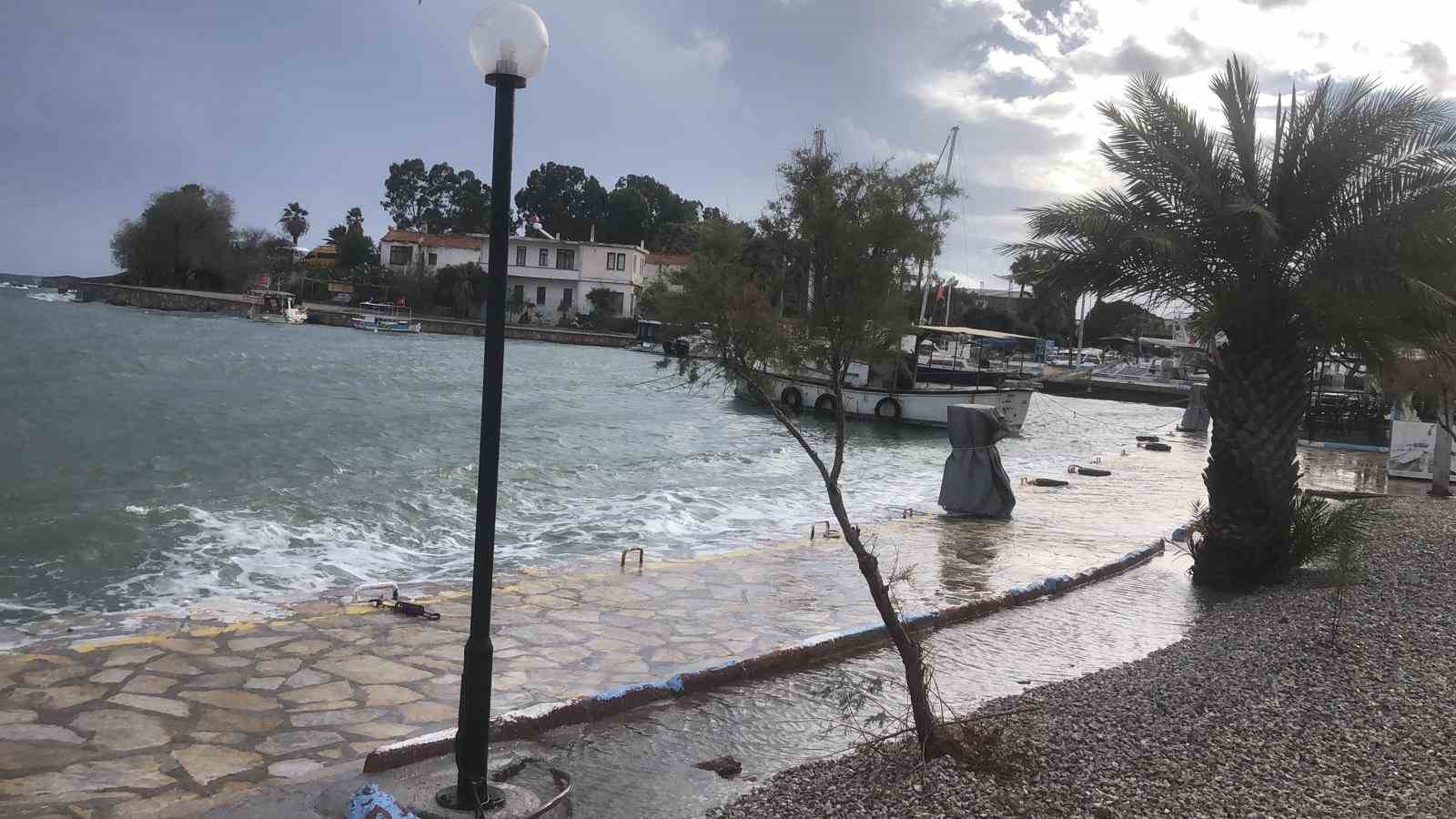 Muğla’nın Datça ilçesinde gece saatlerinde etkisini artıran sağanak yağmurla birlikte lodos, denizde hareketli saatlere neden oldu.