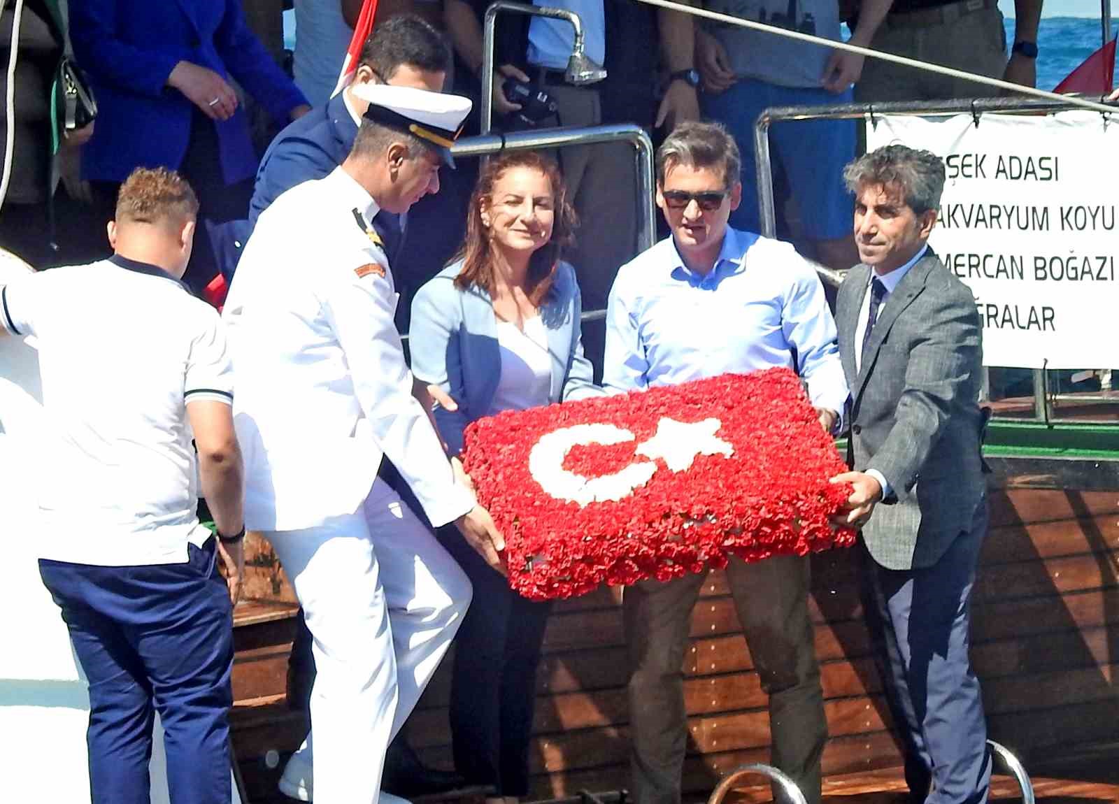 Denizcilik ve Kabotaj Bayramı kutlama töreni, Çeşme Kaymakamı Mehmet Maraşlı, Çeşme Belediye Başkan Vekili Banu Ayhan, Çeşme Liman Başkanı Ahmet Olcay Filiz ve Çeşme Sahil Güvenlik Karakol Komutanı Yüzbaşı Akın Satkan tarafından, deniz şehitleri anısına denize çelenk bırakıldı.