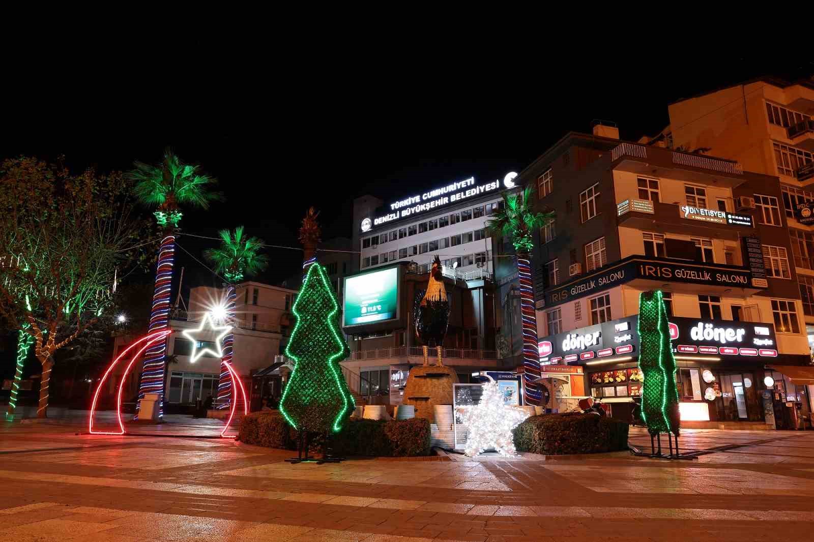 Denizli Büyükşehir Belediyesi tarafından şehrin ana arterlerinde, meydan ve bulvarlarında yeni yıl nedeniyle özel ışıklandırma çalışması yapıldı. Bu kapsamda Delikliçınar Meydanı, Bayramyeri Meydanı, Çamlık Bulvarı, Nihat Zeybekci Kongre ve Kültür Merkezi önü ve Adliye Kavşağı’nda gerçekleştirilen çalışmalar ile Denizli’yi yeni yıl coşkusu sardı. Başta rengârenk ağaç süslemeleri ve ay yıldızlı görsel çalışmalar büyük beğeni toplarken, led ışıklarla hazırlanan görsel şölen de ayrıca vatandaşlara fotoğraf çekme alanı oluşturdu. Büyükşehir Belediyesi Destek Hizmetleri Dairesi’nce imalatı yapılan çalışmalar büyük takdir toplarken, yeni yıl ruhu kentin dört bir yanını sardı.