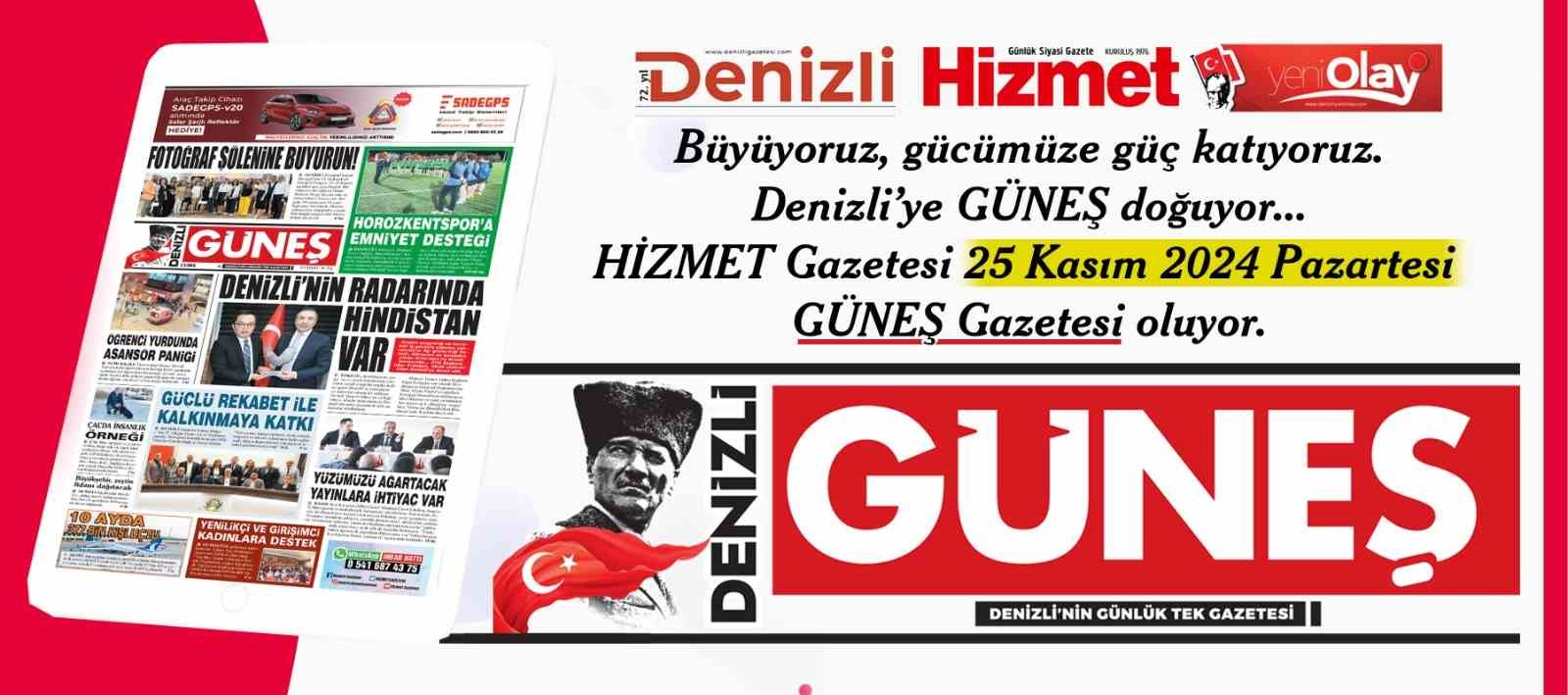 Denizli basınının mihenk taşlarından olan yarım asırlık Hizmet Gazetesi, yeni bir döneme giriyor. Gazete, 25 Kasım Pazartesi’den itibaren Güneş Gazetesi ismiyle Denizli ile buluşuyor.