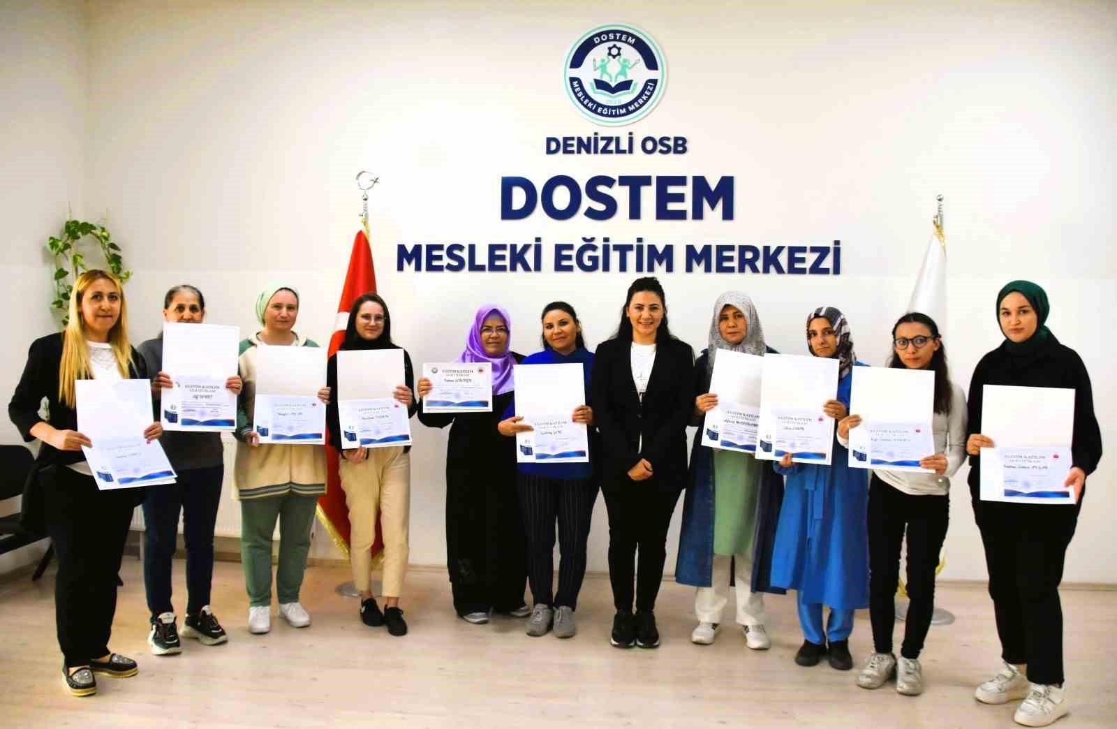 DOSTEM Mesleki Eğitim Merkezi Müdürü Hakkı Öztürker, Müdür Yardımcısı Süleyman Tepeli ve Tekstil Usta Öğretici Şefika Akgören kursu tamamlayan kadınlara sertifikalarını takdim etti. Öte yandan 13 kursiyerden 11’i Denizli Organize Sanayi Bölgesi’ndeki firmalarda istihdam edildi.