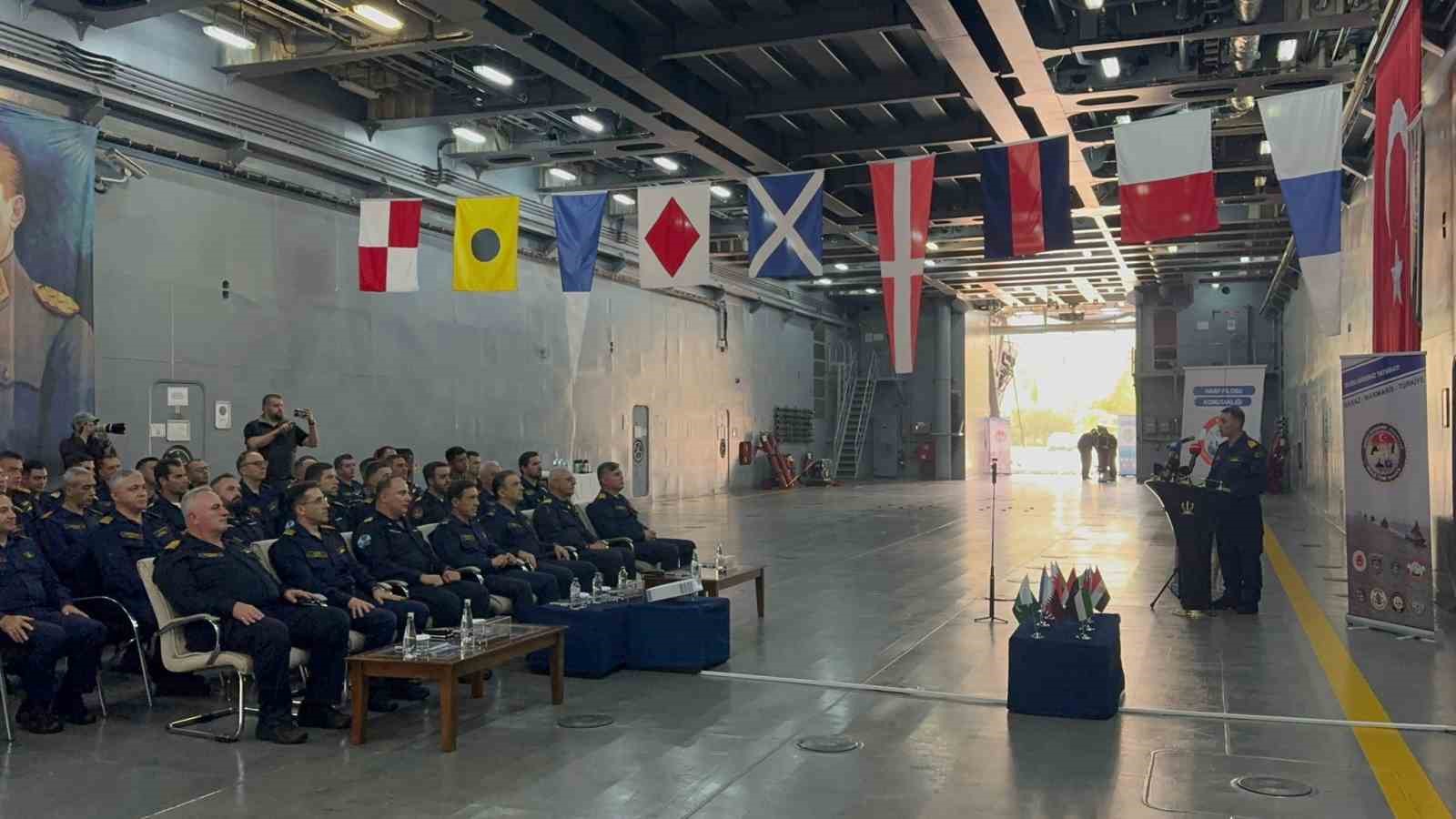 Muğla’nın Marmaris ilçesindeki Aksaz Deniz Üs Komutanlığında gerçekleştirilen toplantıya, Harp Filosu Komutanı Tümamiral Mehmet Baybars Küçükatay, Güney Görev Grup Komutanı Tuğamiral İlyas Ergel, NATO Daimi Deniz Kuvveti Komutanı (COM SNMG-2), NATO Daimi Mayın Karşı Tedbirleri Komutanı (COM SNMCMG-2), Komodorlar, Türk ve yabancı gemi komutanları ile 15 ülkeden katılan yabancı gözlemci ve askeri heyetler yer aldı.