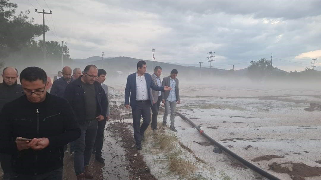 Tarım alanlarında meydana gelen zararı açıklayan İl Başkanı Güngör, ‘Akalan Mahallesi’nde dün saat 16.30 civarı ve sonrası süreçte meydana gelen dolu yağışından dolayı, yapılan ön inceleme sonucunda üreticimizin 10 bin 750 dekar ekili ve dikili tarım alanlarındaki karpuz, kavun, biber, haşhaş, ceviz, bağ, hububat ve nohut ürünlerinde yüzde 80oranında dolu zararı meydana gelmiştir. Aliveren Mahallesi’nde de dolu yağışından dolayı, yapılan ön inceleme sonucunda üreticimizin 865 dekar ekili ve dikili tarım alanlarındaki biber, haşhaş, hububat, ceviz, kiraz, silajlık mısır ve nohut ürünlerinde yüzde 80 oranında dolu zararı meydana gelmiştir” ifadelerini kullandı.