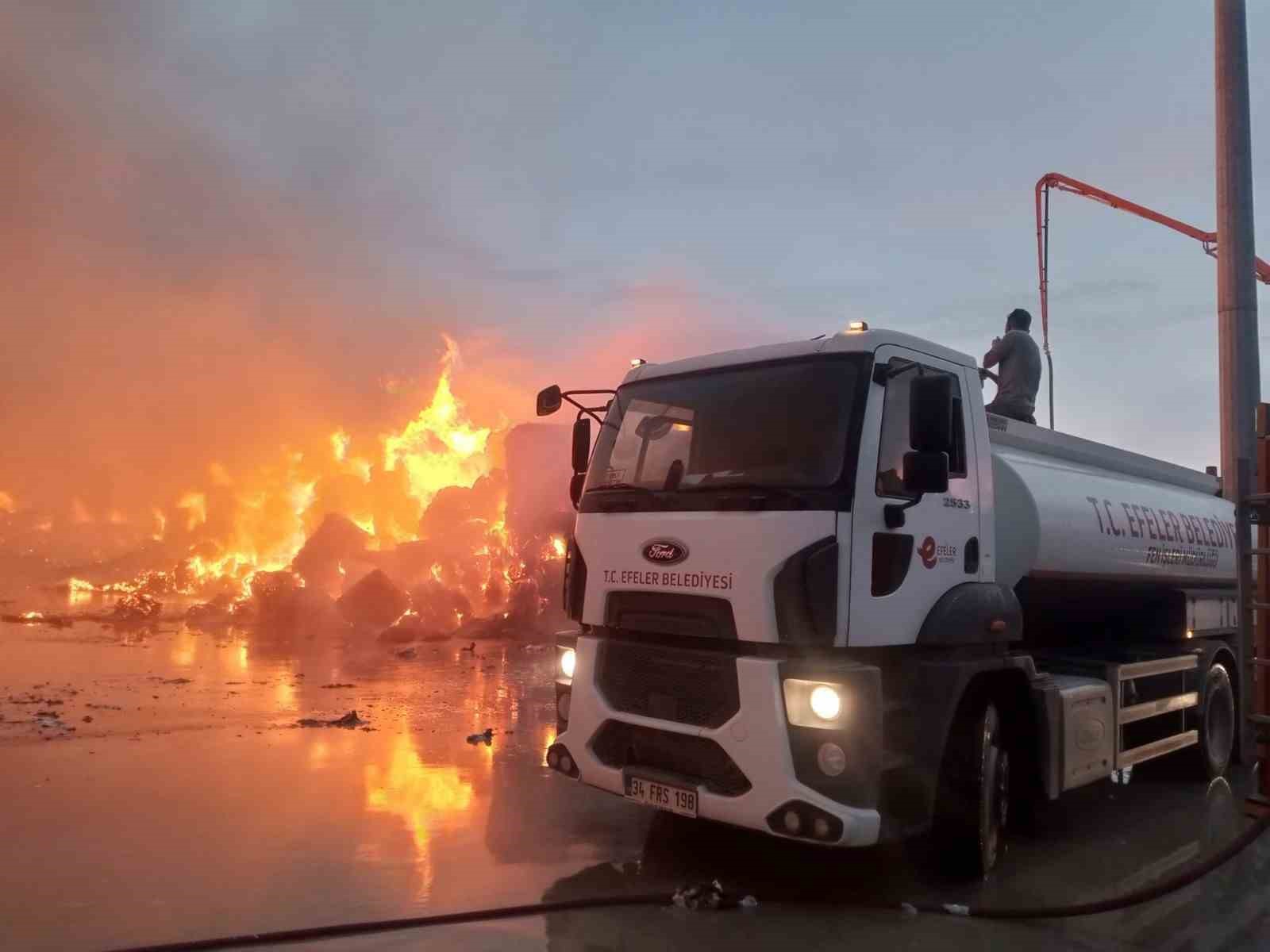 Efeler Belediyesi, Söke’de Kipaş Kağıt Fabrikası’nda devam eden yangın söndürme çalışmalarına destek verdi.