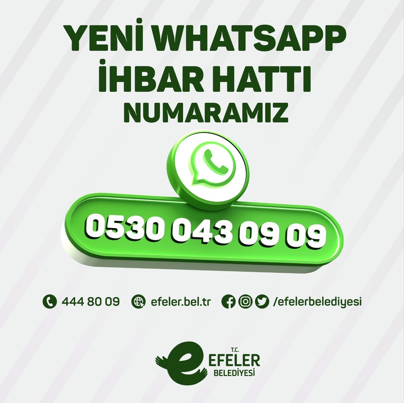 Bu açıdan oldukça önemli bir yere sahip olan Efeler Belediyesi Whatsapp ihbar hattında güncelleme yapıldı. Adeta köprü görevini üstlenen uygulamanın yeni numarası 0530 043 09 09 oldu. Aydın’ın plaka kodu olan 09’u içinde barındıran yeni numara kentle daha bağlantılı hale getirildi.