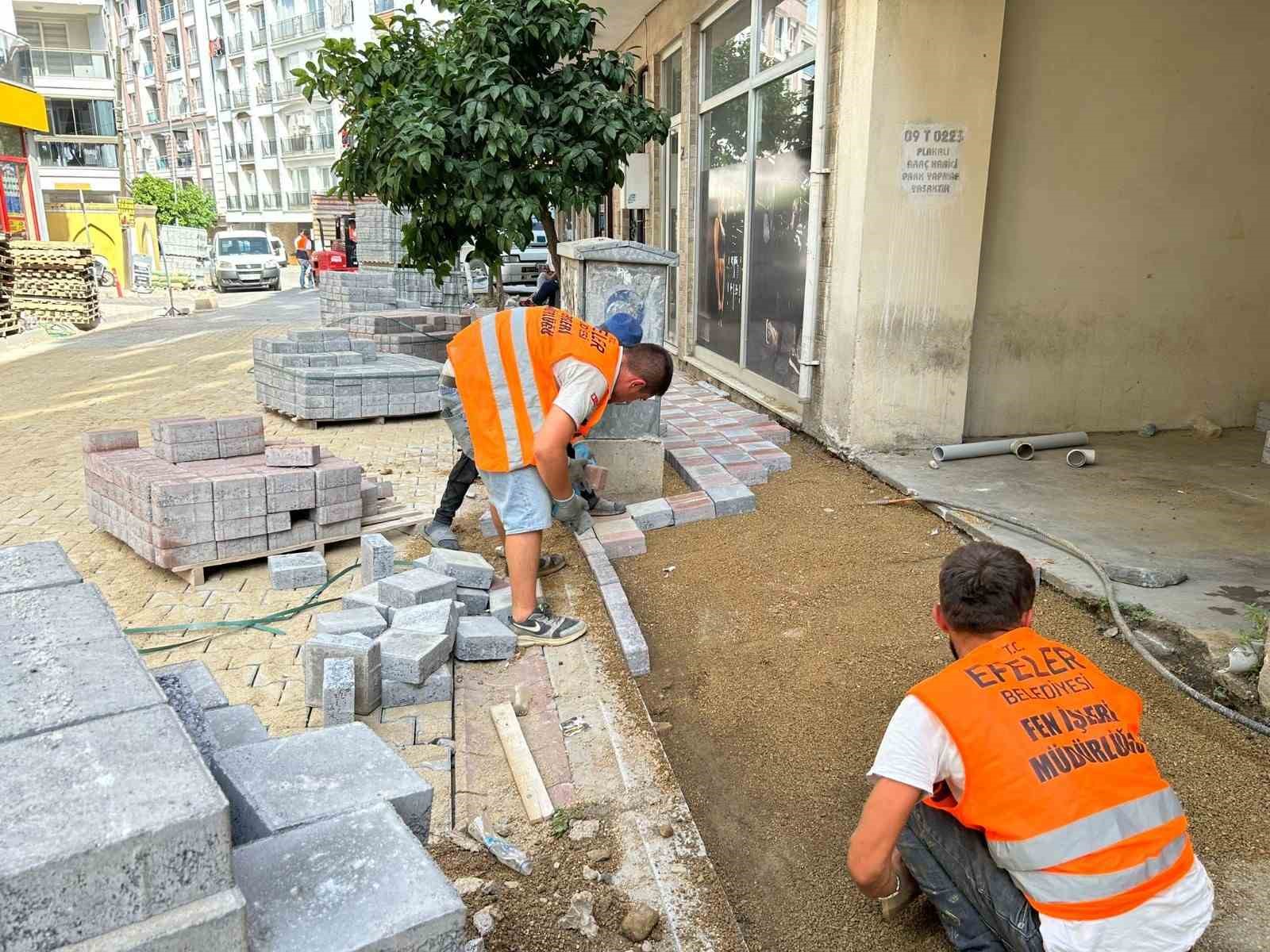 Efeler Belediyesi Fen İşleri Müdürlüğü ekipleri, görev ve sorumluk alanındaki bölgelerde yol yapım ve onarım çalışmalarını sürdürüyor.