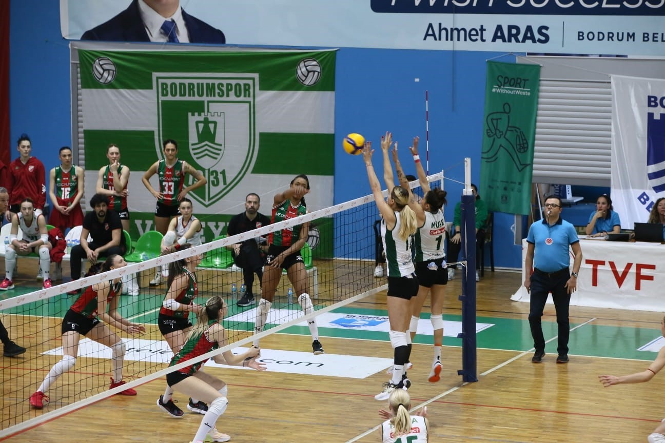 Türkiye Voleybol Federasyonu KFC Kadınlar 1. Lig A Grubu 20. hafta karşılaşmasında Bodrumspor evinde Karşıyaka’yı ağırladı. Binnaz Karakaya Kapalı Spor Salonu’ndaki karşılaşmayı yüzlerce yeşil-beyazlı taraftar izledi. Bodrum’un İncileri ligde iddialı olan rakibini ilk sette 25-18 geçti. Mücadelenin ikinci setinde yeşil-beyazlı ekip rakibini 25-21’lik skorla geride bıraktı.