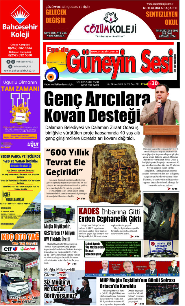 Ana Sayfa EGE'DE GÜNEYİN SESİ GAZETESİ Ege’de Güneyin Sesi Gazetesi 681. Sayı EGE'DE GÜNEYİN SESİ GAZETESİ Ege’de Güneyin Sesi Gazetesi 681. Sayı 2 Nisan 2026 0