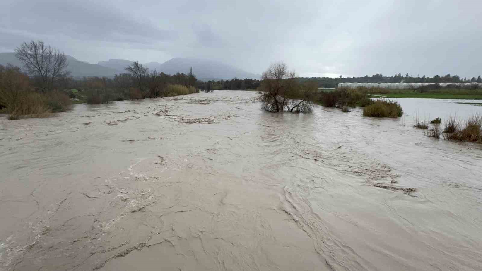 Muğla’nın Seydikemer ilçesinde şiddetli yağış sonrası Eşen Çayı’nın taşmasıyla tarım arazileri ve hayvan barınağı sular altında kalırken, alabalık üretim tesislerinde mahsur kalan 2 kişi kurtarıldı.