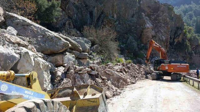 Muğla’nın Fethiye ilçesi Faralya Mahallesi Kabak mevkiinde meydana gelen heyelan ve kaya düşmesi nedeniyle yol ulaşıma kapandı. Muğla Büyükşehir Belediyesi ekipleri hızlı müdahaleyle yolu açmak için çalışmalara başladı.