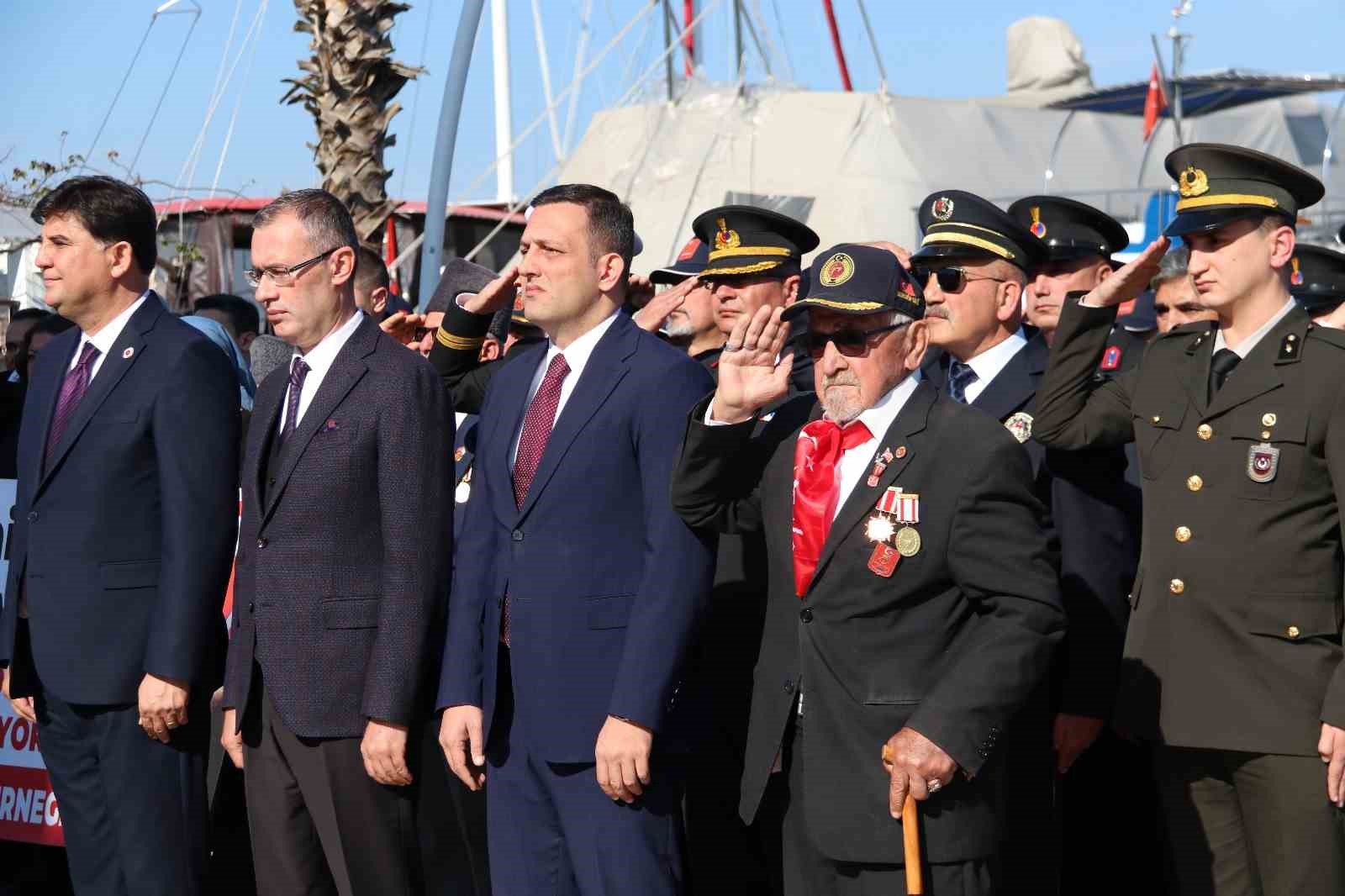 Törende günün anlam ve önemini belirten konuşmayı Fethiye Muharip Gaziler ve Şehit Aileleri Yardımlaşma ve Dayanışma Derneği Başkanı Namık Ünal yaptı. Ünal konuşmasında, “18 Mart Türk kahramanlığının muhteşem örnekleri tarihimizin yazılmasında çok büyük emekleri bulunan, vatan savunması ve ile süslü zaferlerini bize öğreten, bağımsızlığımızın korunması yolunda canlarını seve seve feda eden aziz şehitlerimizi saygı ile anmak için burada toplanmış bulunuyoruz. Türk milletinin tarihi insanlık tarihi kadar eskidir. Türkler bu zaman zarfında hiçbir milletin egemenliğinde kalmamışlardır. Milletimiz zaman zaman zor anlar yaşamış, düşmanların öldü dediği anda Türk Milleti devlet olmuştur. Büyük milletimizin bağrından büyük kahramanlar çağ açıp çağ kapatan dahiler, devlet kuran büyük insanlar çıkmıştır. Yakın tarihimizde Çanakkale Destanı yazılmıştır. Düşman devletlerinin her türlü imkan ve gücüne karşı Büyük Komutan Mustafa Kemal ve silah arkadaşlarının etrafında yer alan Türk Milleti Çanakkale Geçilmez destanını yazmıştır. Çanakkale Geçilmez Destanı yazılırken ülkenin doğusundan batısına, güneyinden kuzeyine eli silah tutan vatan evlatları görev almıştır. Bunlardan 250 bine yakını şehit olmuş, geride on binlerce gazi kalmıştır. İnanç, vatan sevgisi, dayanışma, birlik ve beraberlik duyguları zamanın en güçlü ve donanımlı ordularına karşı koymada en önemli faktörler olmuştur. Bugün bu aziz vatanda canlarından ve namuslarından emin olarak bağımsız bir hayat yaşayan bizler, tüm şehitlerimize ve gazilerimize minnet ve şükran duyguları ile dolu olmalı yeni nesilleri bu duygular ile yetiştirmeliyiz” ifadelerini kullandı.