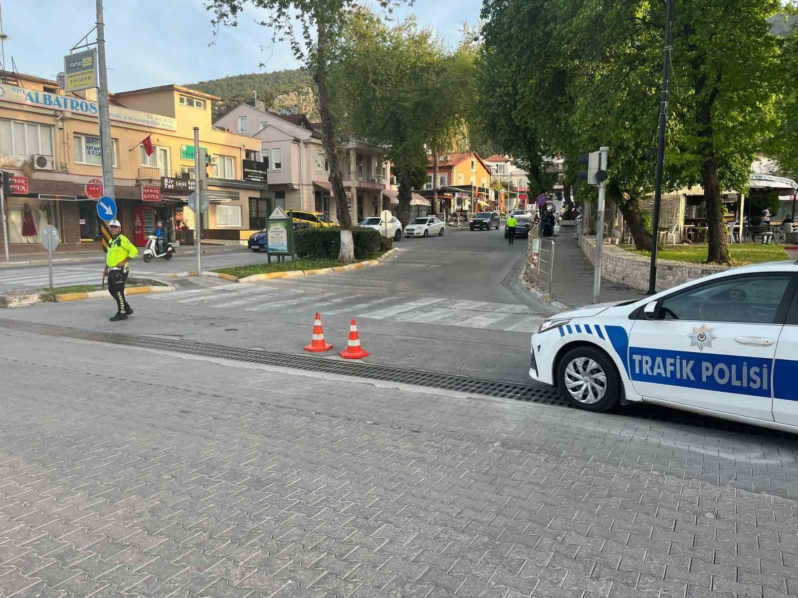 Muğla’nın Fethiye ilçesinde seçim güvenliği kapsamında polis ekipleri bazı güzergahlarda trafiği sivil araçlara kapattı.