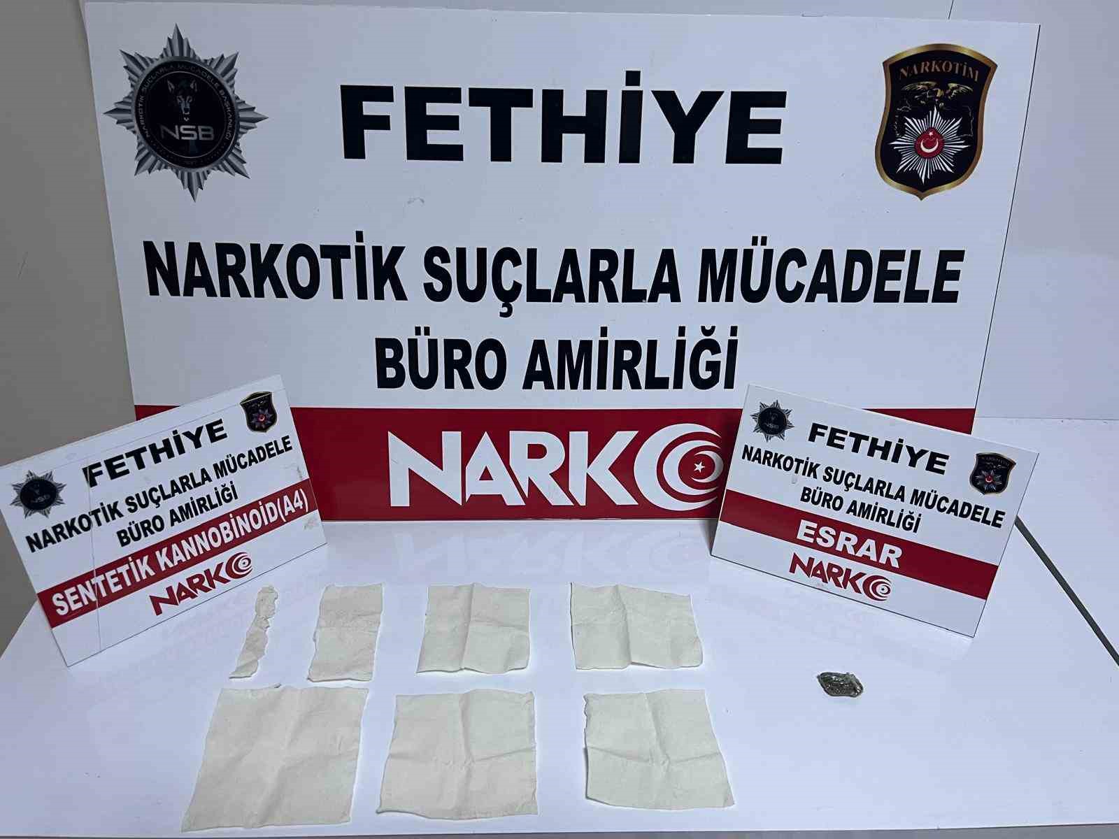 Edinilen bilgiye göre, Muğla İl Emniyet Müdürlüğü Fethiye Narkotik Suçlarla Mücadele Büro Amirliği ilçede uyuşturucu ticareti yapanlara yönelik çalışma başlattı. Çalışmalar kapsamında takibe aldıkları M.Ö. (45) ve E.K. (44) adlı şahıslar durduruldu. Şahısların üzerlerinde yapılan aramalarda emdirilmiş uyuşturucu madde ele geçirildi. Polis ekipleri 2 kişiyi gözaltına alırken, emniyetteki işlemlerinin ardından adliyeye sevk edilen şüpheliler tutuklanarak cezaevine gönderildi.